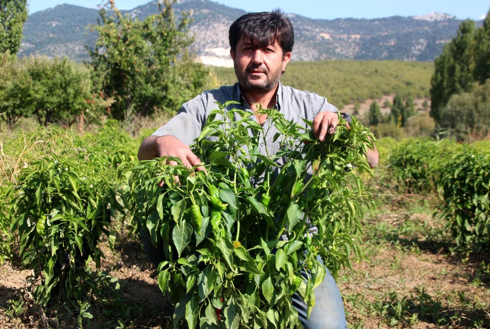 Konya’nın Beyşehir ilçesinde çiftçilik yapan ve aynı zamanda muhtar olan İsmail Duman, tarım arazisinde deneme maksadıyla isot biberi üretimi gerçekleştirdi.