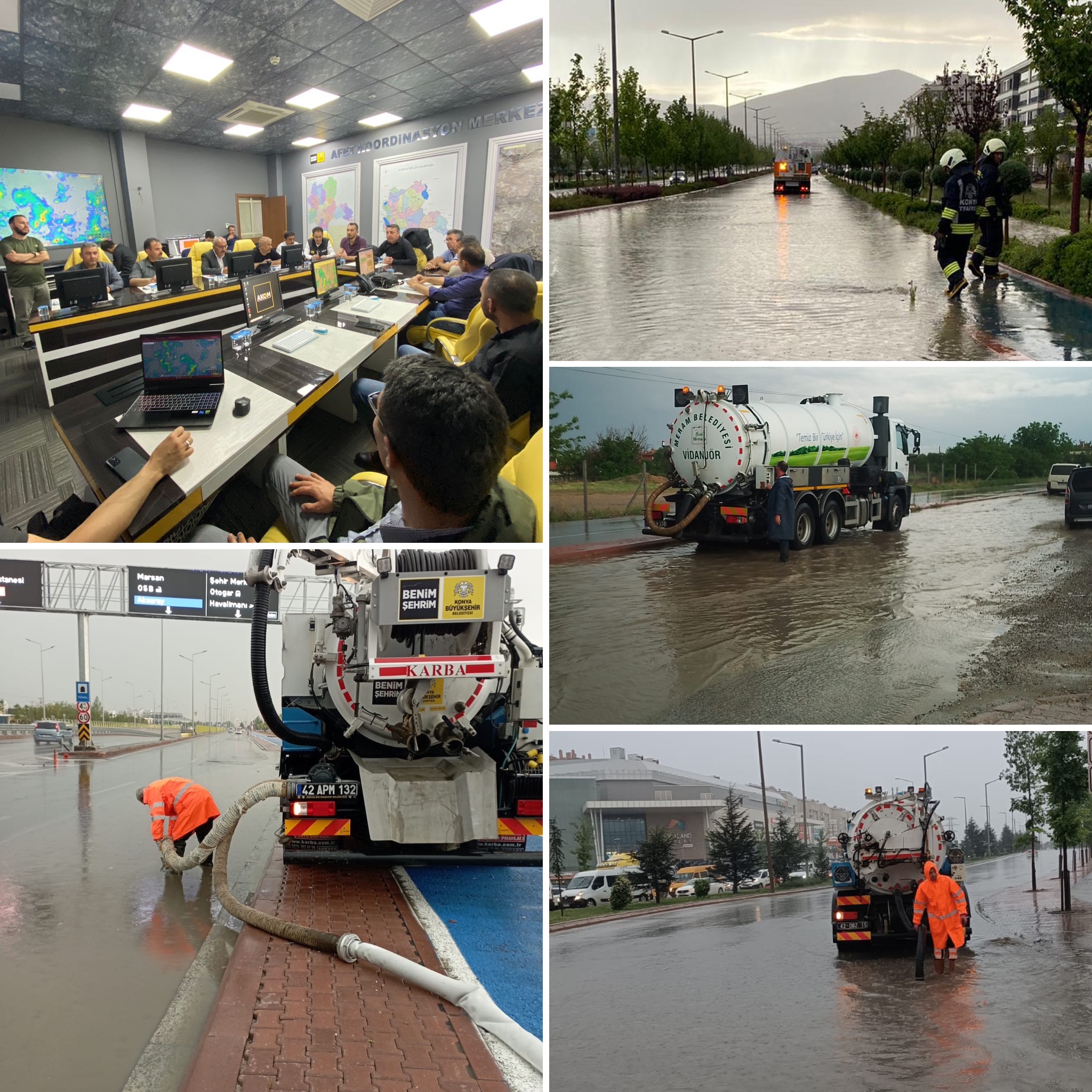 Konya Büyükşehir Belediyesi Afet Koordinasyon Merkezi (AKOM) koordinatörlüğünde ekiplerin görev başında yağışların etkilerini en aza indirmek için mücadele verdiğini paylaştı. Bazı cadde ve kavşaklarda aksayan ulaşıma ekiplerin müdahale ettiğini açıkladı.