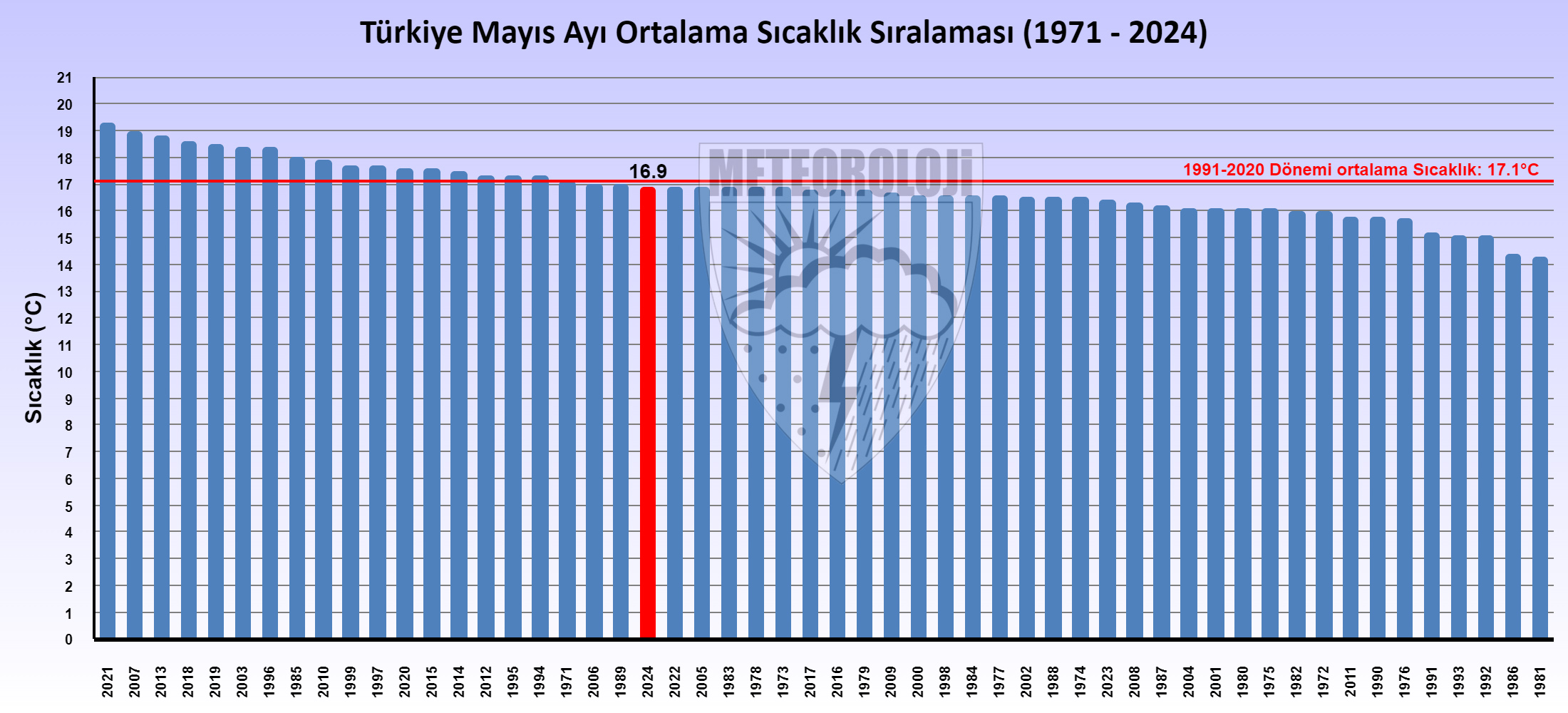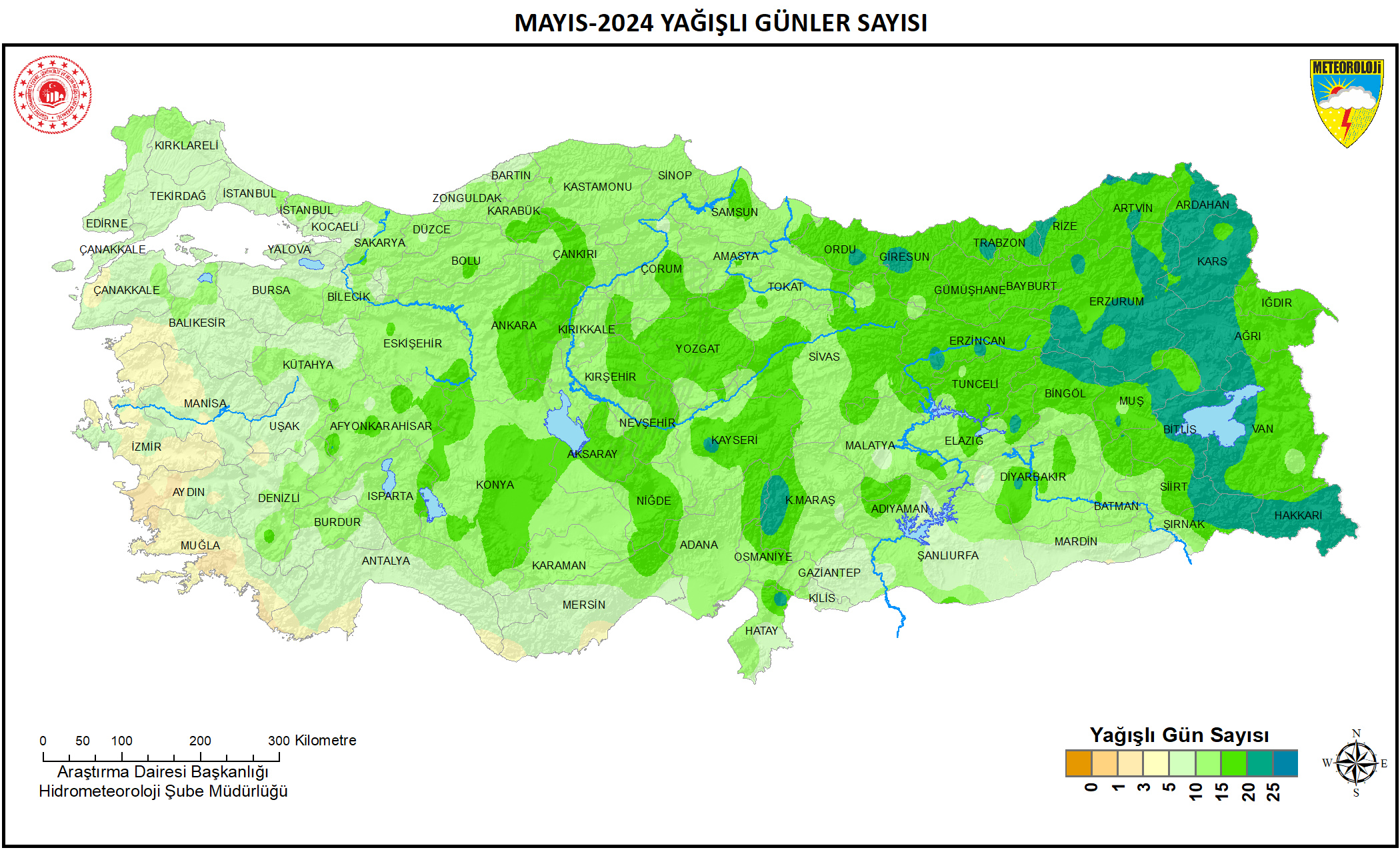 2024 Yılı Mayıs Ayı Alansal Yağış raporuna göre, Türkiye geneli mayıs ayı yağışı normalinin ve geçen yıl mayıs ayı yağışının üzerinde gerçekleşti. Bu yıl mayıs ayı yağışı 70,3 mm, mayıs ayı normali (1991-2020) 52,7 mm, geçen yıl mayıs ayı yağışı 66,8 mm. Yağışlarda normaline göre yüzde 33 ve geçen yıl mayıs ayı yağışlarına göre yüzde 5 artış meydana geldi.