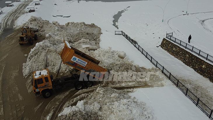 Bayındır, belediye olarak topladıkları karları, kamyonlarla Beyşehir Gölü'nün kıyısına bıraktıklarını ifade etti. Göl suyunun seviyesini yükseltebilmek için böyle bir çalışma yaptıklarını aktaran Bayındır, şunları kaydetti: