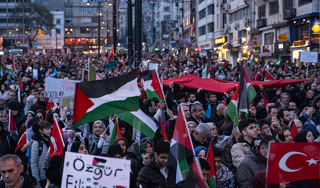 Türkiye'deki 29 Sivil Toplum Kuruluşunun (STK) bir araya gelerek oluşturduğu Milli İrade Platformu, 1 Ocak'ta saat 08:30 sularında (bugün) Galata Köprüsü'nde, "Şehitlerimize Rahmet, Filistin'e Destek, İsrail'e Lanet" sloganıyla yürüyüşe başladı.Milli İrade Platformu, tüm İstanbullulara tarihi bir çağrı yaparak, yeni yılın ilk gününde dünyaya karşı ses yükseltmeye davet etti.