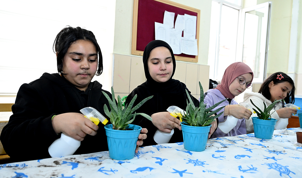 Bunun yanında "Konya Büyükşehir Tarım Çocuk Kitabı" ile öğrencilere öğrendiklerini pekiştirmeleri sağlanıyor. Okullarda geri dönüşüm malzemelerinden saksı yapmayı da öğrenen öğrenciler, evde tükettikleri sebze ve meyve tohumlarını çoğaltmak üzere biriktiriyor.