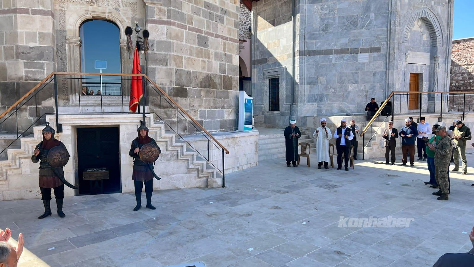 Komutanların gözetiminde marş eşliğinde Selçuklu kıyafetleriyle türbe önüne gelen askeri birlik nöbeti, tekmille devraldı. Ardından göndere sancak çekildi ve nöbet değişim fermanı okundu.