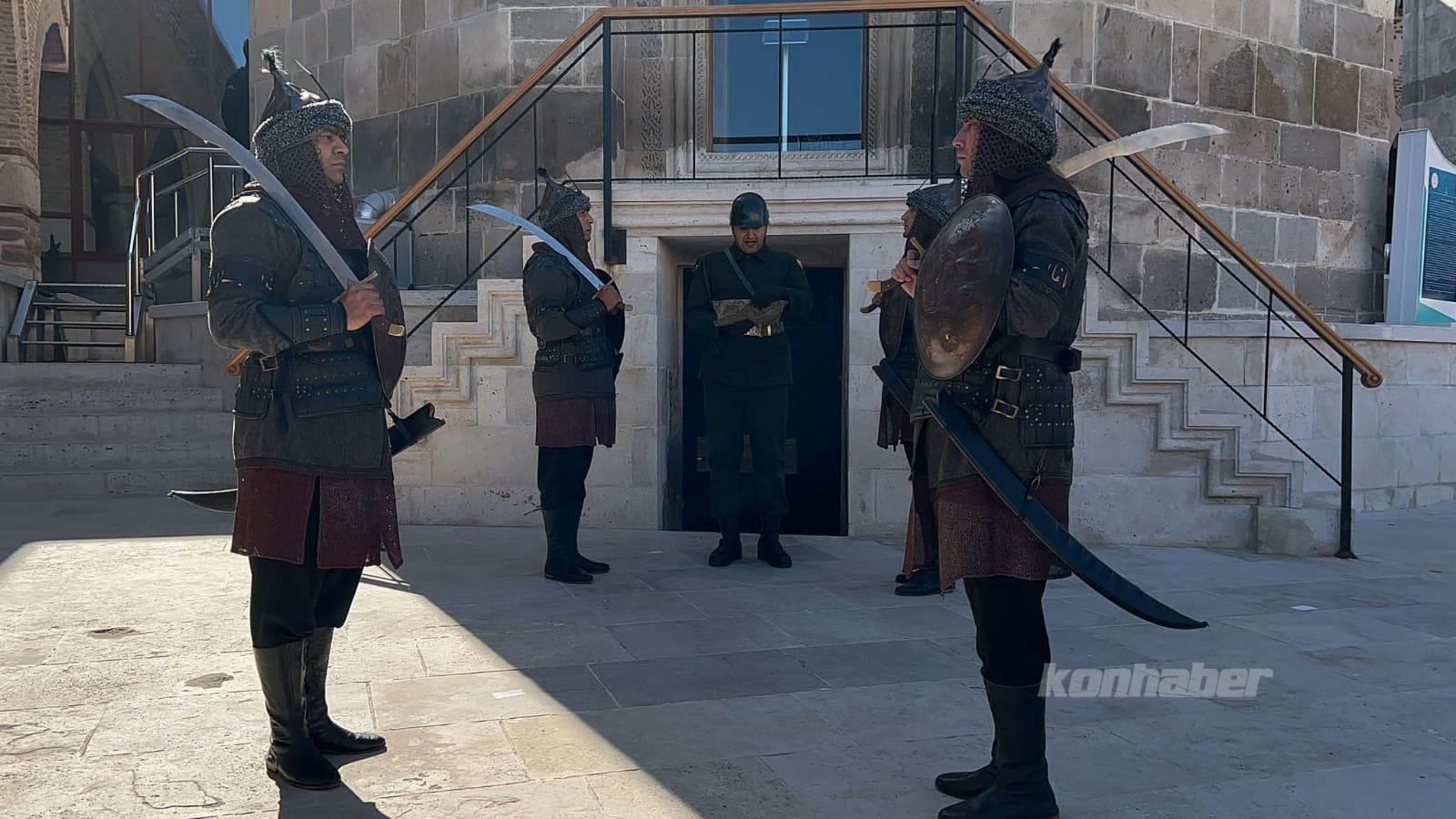 Ecdada olan saygıyı gösterme amacıyla geçtiğimiz yıl başlatılan uygulamayla Konya Büyükşehir Belediyesi Kültür Dairesi Tiyatro Ekibi tarafından her cuma çıkışı türbe önünde saygı nöbeti gerçekleştiriliyordu.