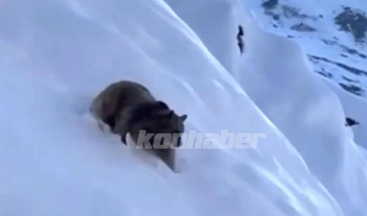 Meydan Dağı’na tırmanan 10 kişilik dağcı grubunun karşısına bozayı çıktı.Yarım metrelik karda bozayı, dağcılara doğru ilerlemeye başladı.