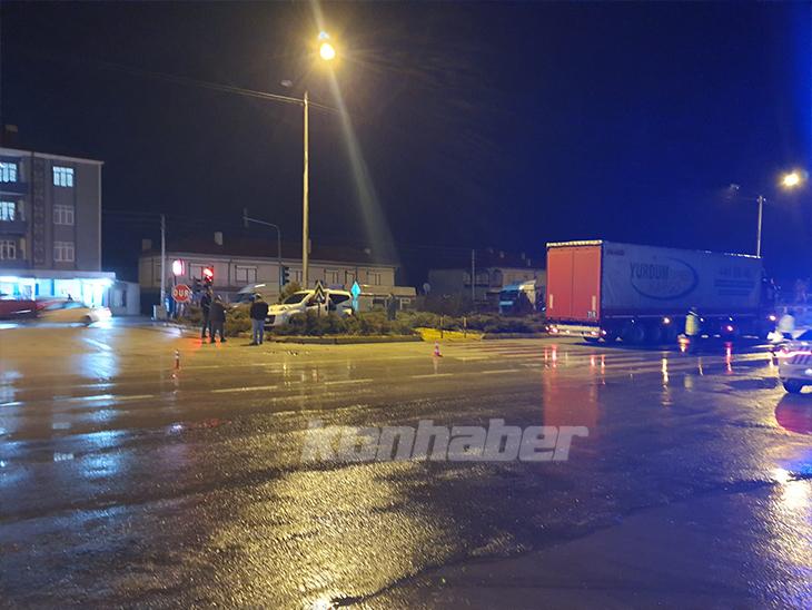 Alınan bilgiye göre, M. A. idaresindeki 31 ZC 485 plakalı tır ile Yusuf V.(29) idaresindeki 06 DJ 8736 hafif ticari araç çarpıştı.