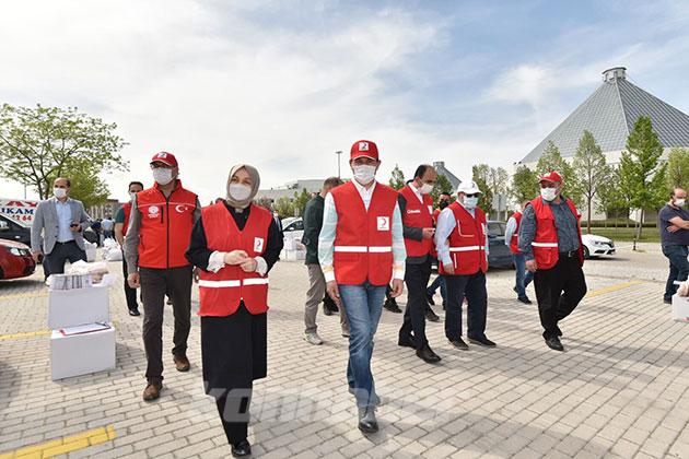 AK Parti Genel Başkan Yardımcısı, Konya Milletvekili Leyla Şahin Usta, Konya Büyükşehir Belediye Başkanı Uğur İbrahim Altay, Karatay Kaymakamı Abdullah Selim Parlar, Karatay Belediye Başkanı Hasan Kılca, Türk Kızılay Derneği Konya Şube Başkanı Hüseyin Üzülmez; Türk Kızılay Karatay Şubesi tarafından ihtiyaç sahiplerine dağıtılmak üzere hazırlanan gıda kolilerini ulaştıracak gönüllü yardım ekiplerini ziyaret etti.
