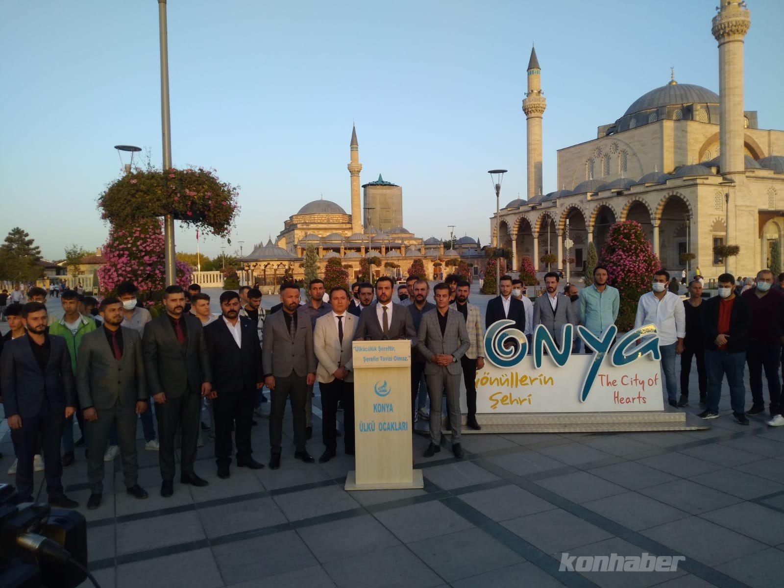 Bu münasebetle Hz. Mevlâna Konya'nın, ülkemizin, milletimizin ve tüm dünyanın bir kıymetidir, değeridir. Bu milletin manevi değerlerine saldırmayı bırakın. Bu milletin manevi değerlerinden ellerinizi çekiniz. Bu sebeple yapmış olduğunuz kirli siyasette insanlar doğru yüzünüzü görsün. Zillet ittifakının Hz. Mevlâna’ya olan saldırısını Konya Ülkü Ocakları olarak kınıyor ve bunları bu mesnetsizliklerinden bir an önce dönmeye davet ediyoruz. Kahrolsun şer odakları, var olsun Ülkü Ocakları."