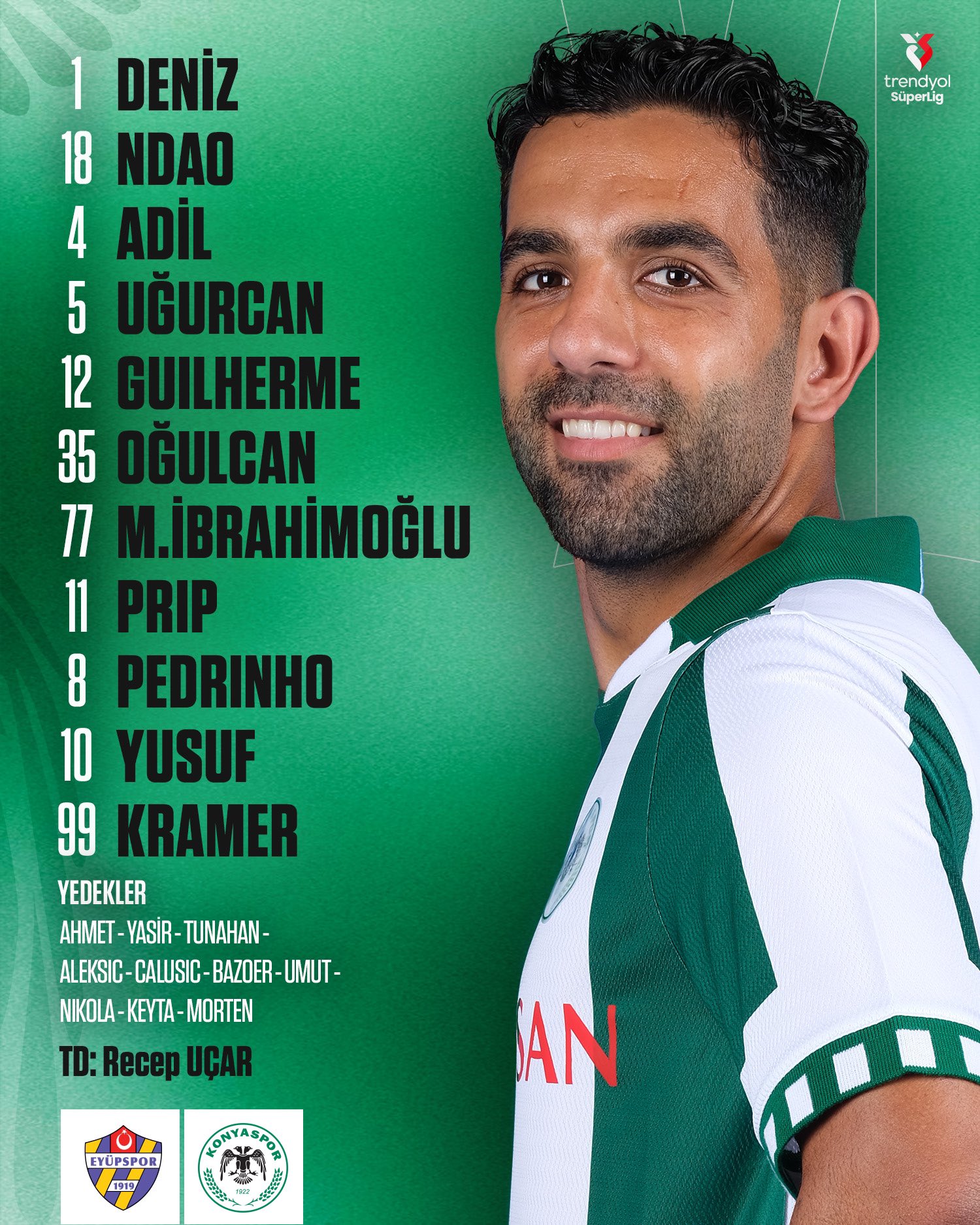 Konyaspor: Ertaş, Demirbağ, Yazğılı, Pedrinho, Erdoğan, Prip, Guilherme, Ndao, Ülgün, İbrahimoğlu, Kramer