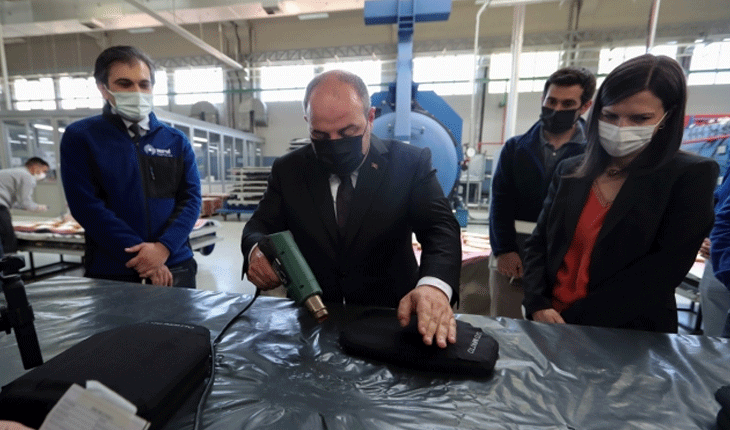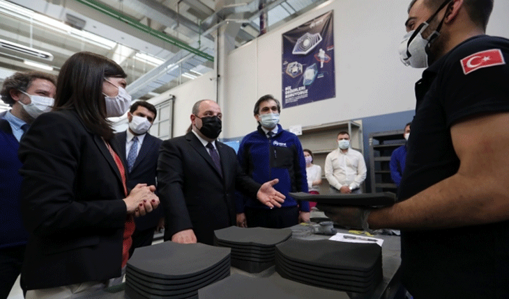 Genel Müdür Selim Baybaş ile Genel Müdür Yardımcısı Serpil Gönenç'ten çalışmalar ve gelecek planlamalarına ilişkin bilgi alan Bakan Varank, şirketin ürettiği ileri teknik seramiklerle platform ve personel korumaya yönelik balistik çözümlerini inceledi.