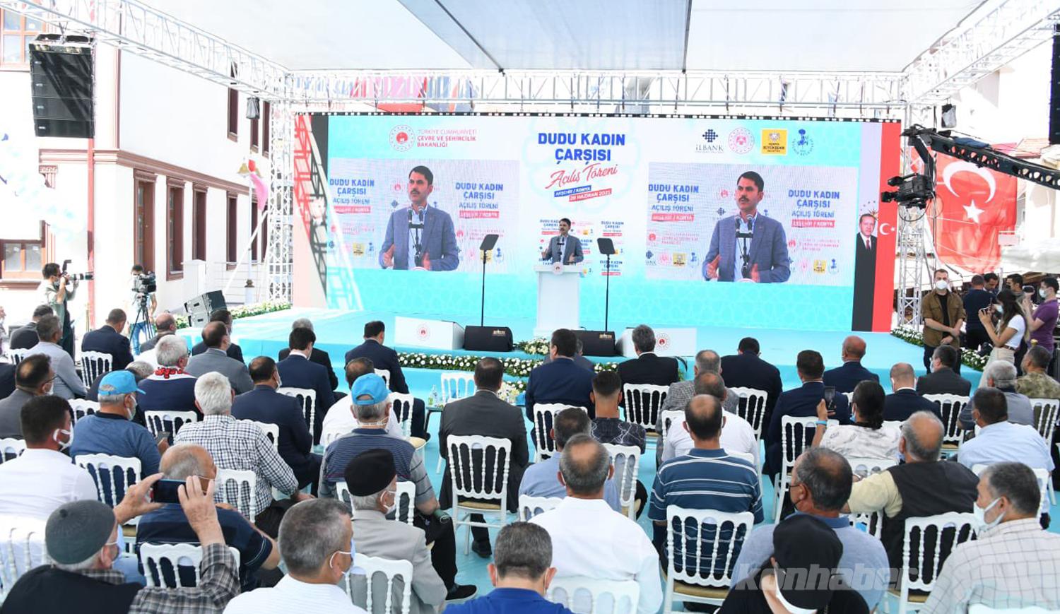 Konya'nın 31 ilçesinde de yatırımların hızla devam ettiğini vurgulayan Kurum, Akşehir'de yatırım tutarı 30 milyon lira olan Dudu Kadın Çarşı'nın hizmete alındığını söyledi.