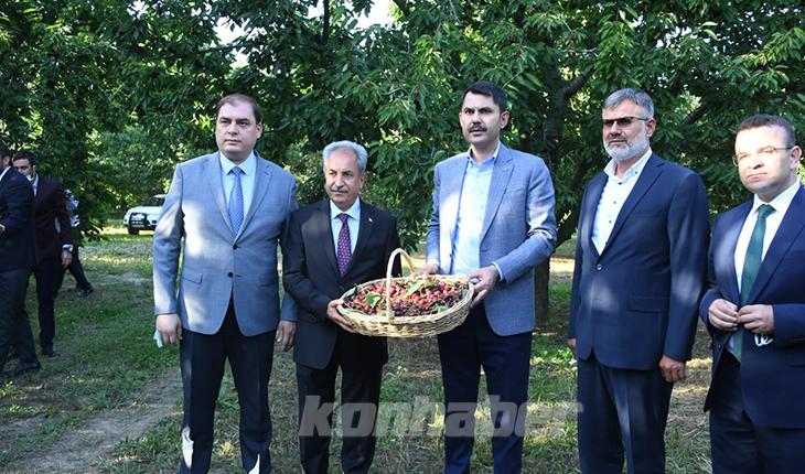 Bakan Murat Kurum, Akşehir’deki temasları kapsamında son olarak tescilli Akşehir Kirazı bahçesinde dalından kiraz toplayıp Akşehir kirazının tadına baktı.