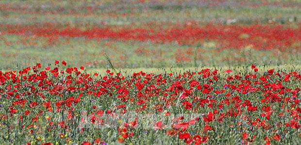 Beyşehir'de ilkbahar mevsiminin son günlerinde araziler, açan gelincik çiçekleriyle birlikte adeta kırmızı renklere boyandı.