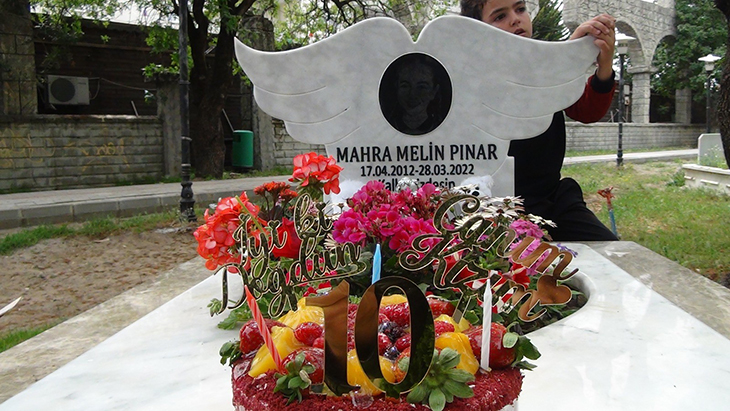 Antalya'nın Serik ilçesinde sahipsiz köpeklerden kaçarken kamyonun altında kalan ve 23 günlük yaşam mücadelesini kaybeden 9 yaşındaki Mahra Melin Pınar'ın 10'uncu doğum günü, ailesi ve arkadaşlarının katılımıyla mezarı başında kutlandı. Gözyaşlarının sel olduğu kutlamada dualar edilip pasta kesildi. Anne Derya Pınar, kızının mezarına sarılarak, "Doğum günün kutlu olsun kızım. İyi ki benim kızımsın" diyerek gözyaşı döktü.