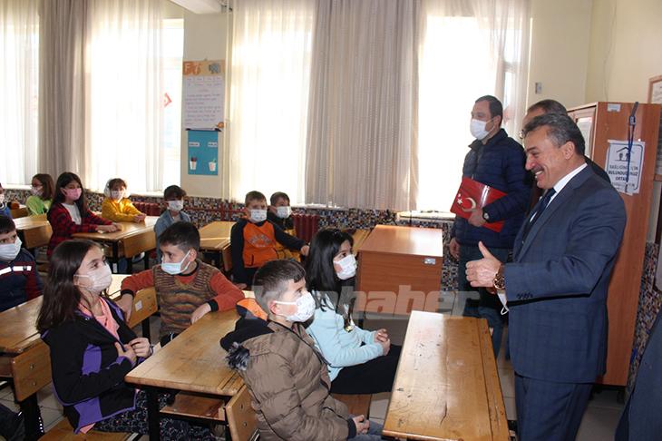 Çocuklarla hoş vakitler de geçiren Kaymakam Pişkin ve Başkan Tutal, öğrencileri tek tek tebrik ederek karnelerini verdi, keyifli tatiller dileklerini iletti.