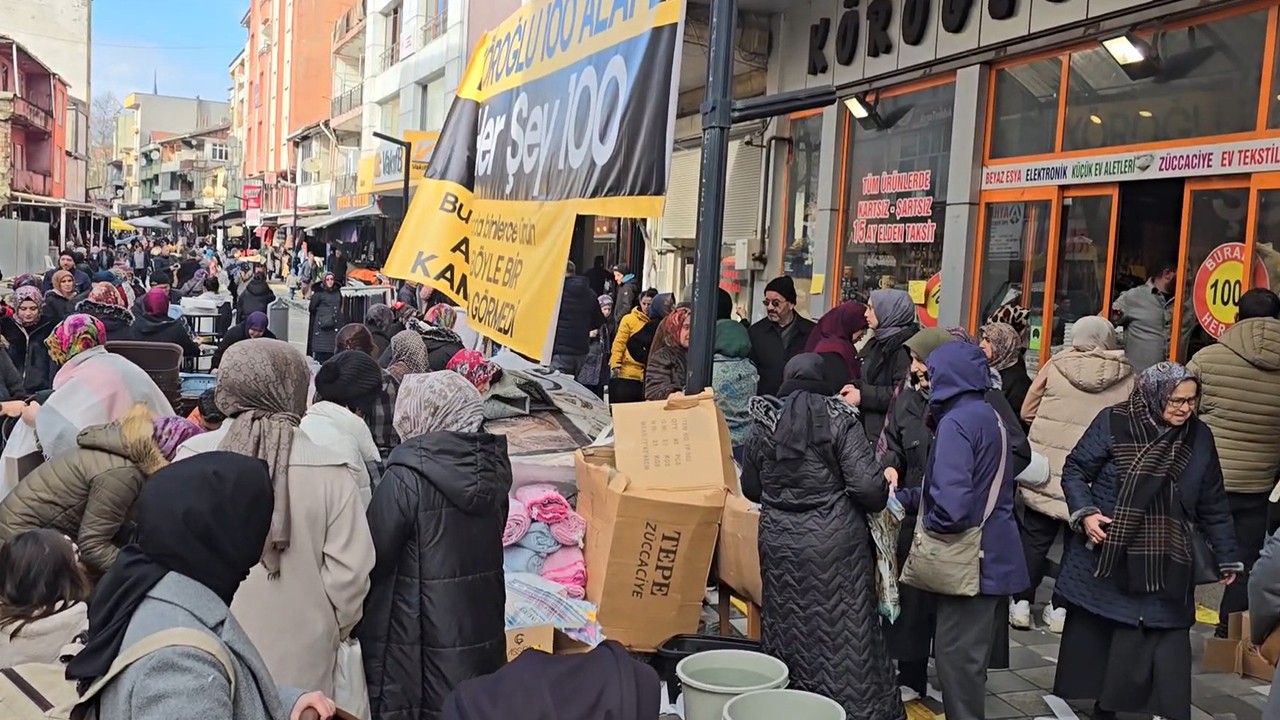 Zonguldak'ın Alaplı ilçesinde bir mağazanın açılışında vatandaşlar 100 liraya satılan ürünlerden alabilmek için adeta birbirleriyle yarıştı. İzdiham nedeniyle mağazadaki birçok cam ürün kırıldı.