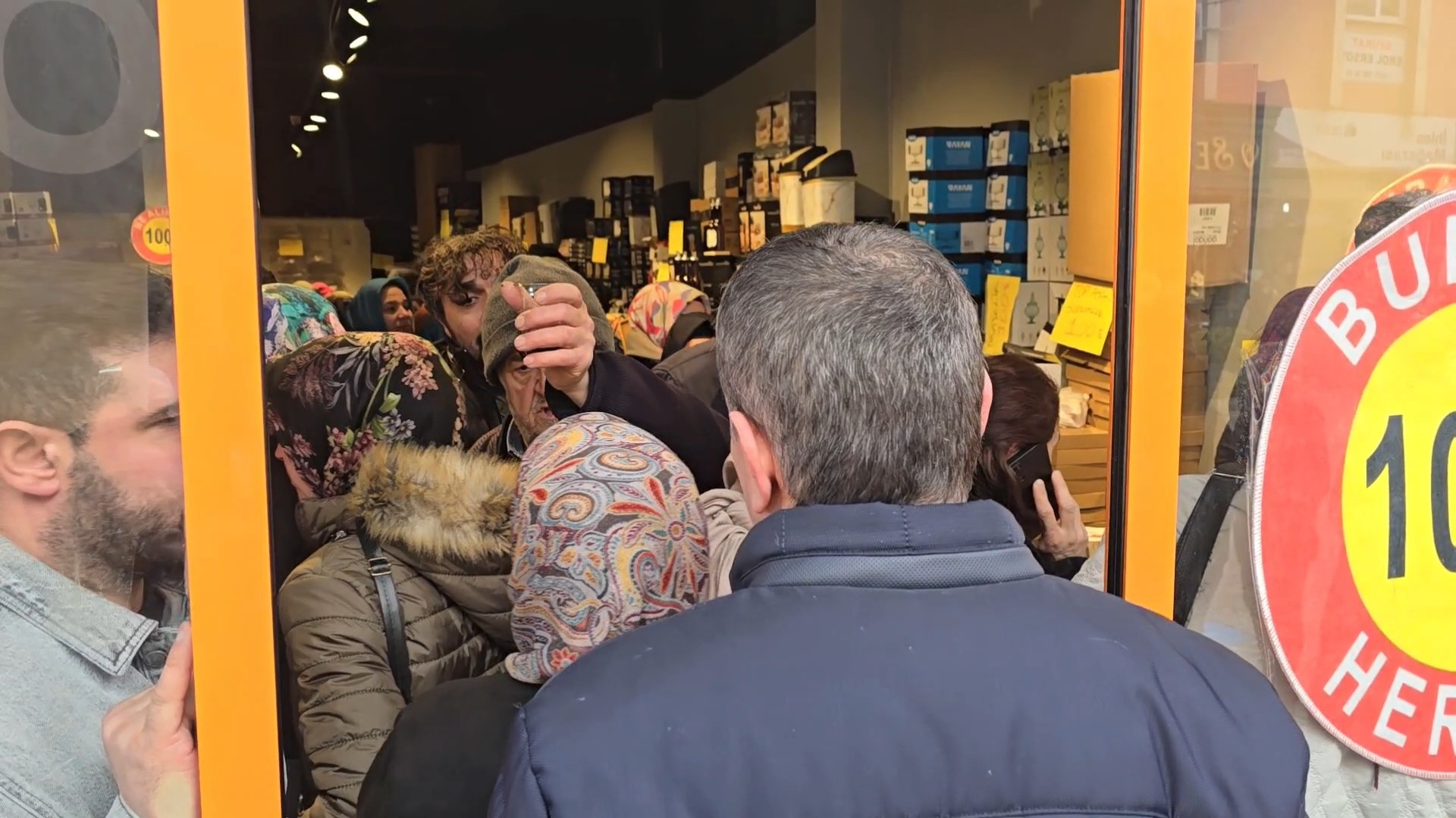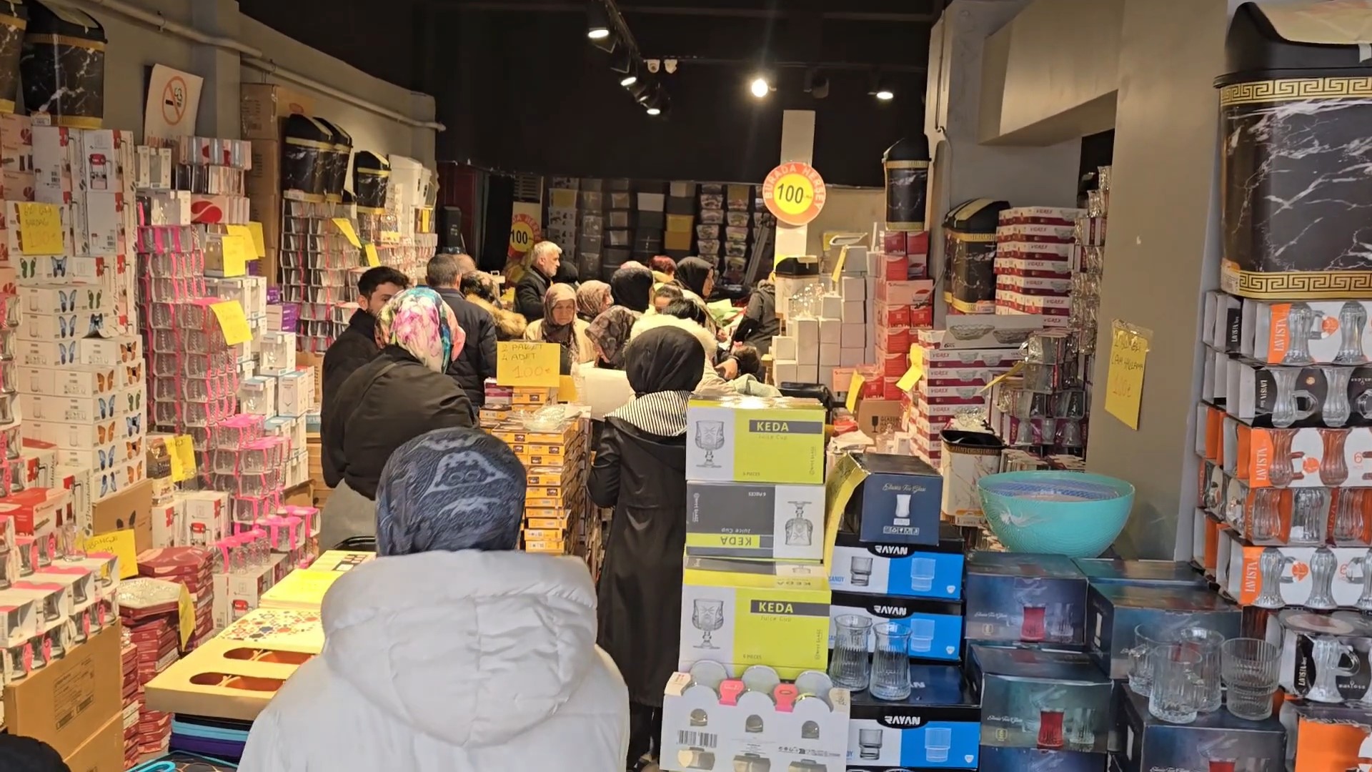 Büyük bir bölümü bardak, sürahi, saklama kabı gibi camdan imal edilen ürünlerden oluşan mağazada birçok cam ürünü ise yoğun kalabalık nedeniyle kırıldı. Vatandaşlar ise bir ürün daha fazla satın alabilmek için adeta birbiriyle yarıştı.