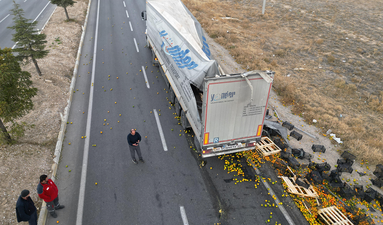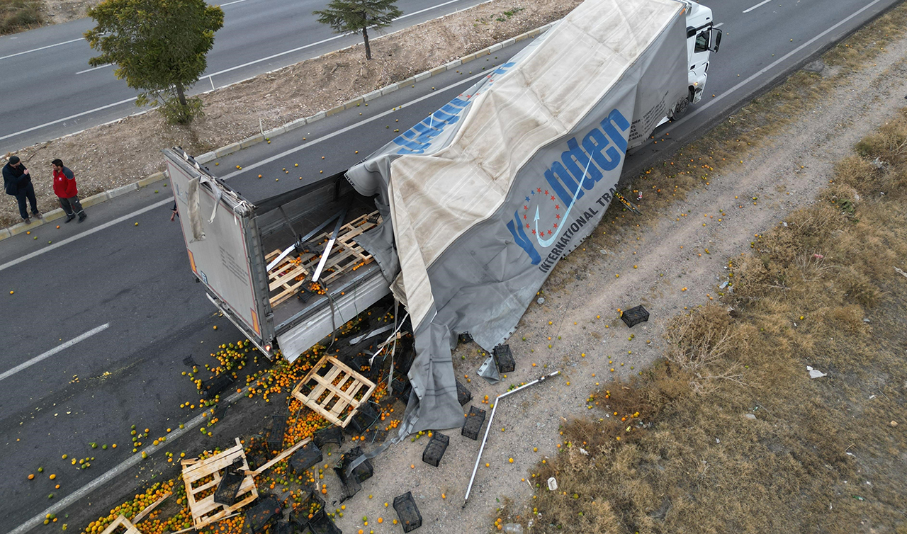 Ardından refüje giren tırın dorsesi açıldı. Açılan dorseden yola yaklaşık 10 ton mandalina savruldu. Olayın ardından bölgeye gelen jandarma ekipleri önce yol güvenliğini sağladı, ardından yoldaki trafiği alternatif yollara yönlendirdi.