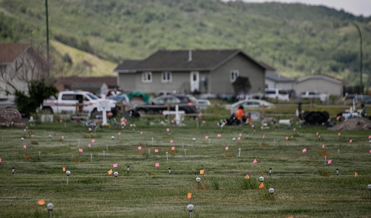 Saskatchewan eyaletindeki Marieval Yatılı Kilise Okulunun bahçesinde, 24 Haziran 2021'de resmi kayıtlarda bulunmayan 751 çocuk cesedi kalıntısının olduğu mezarlar ortaya çıkmıştı.