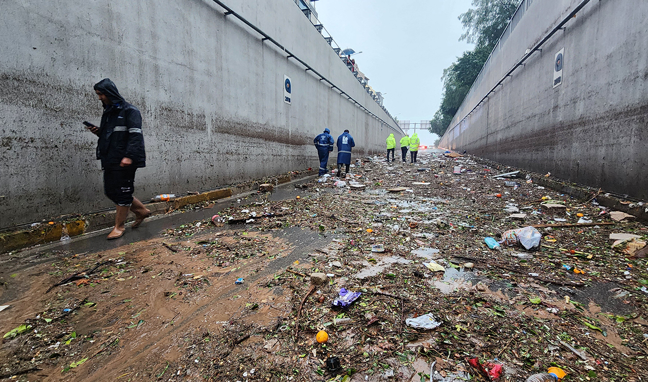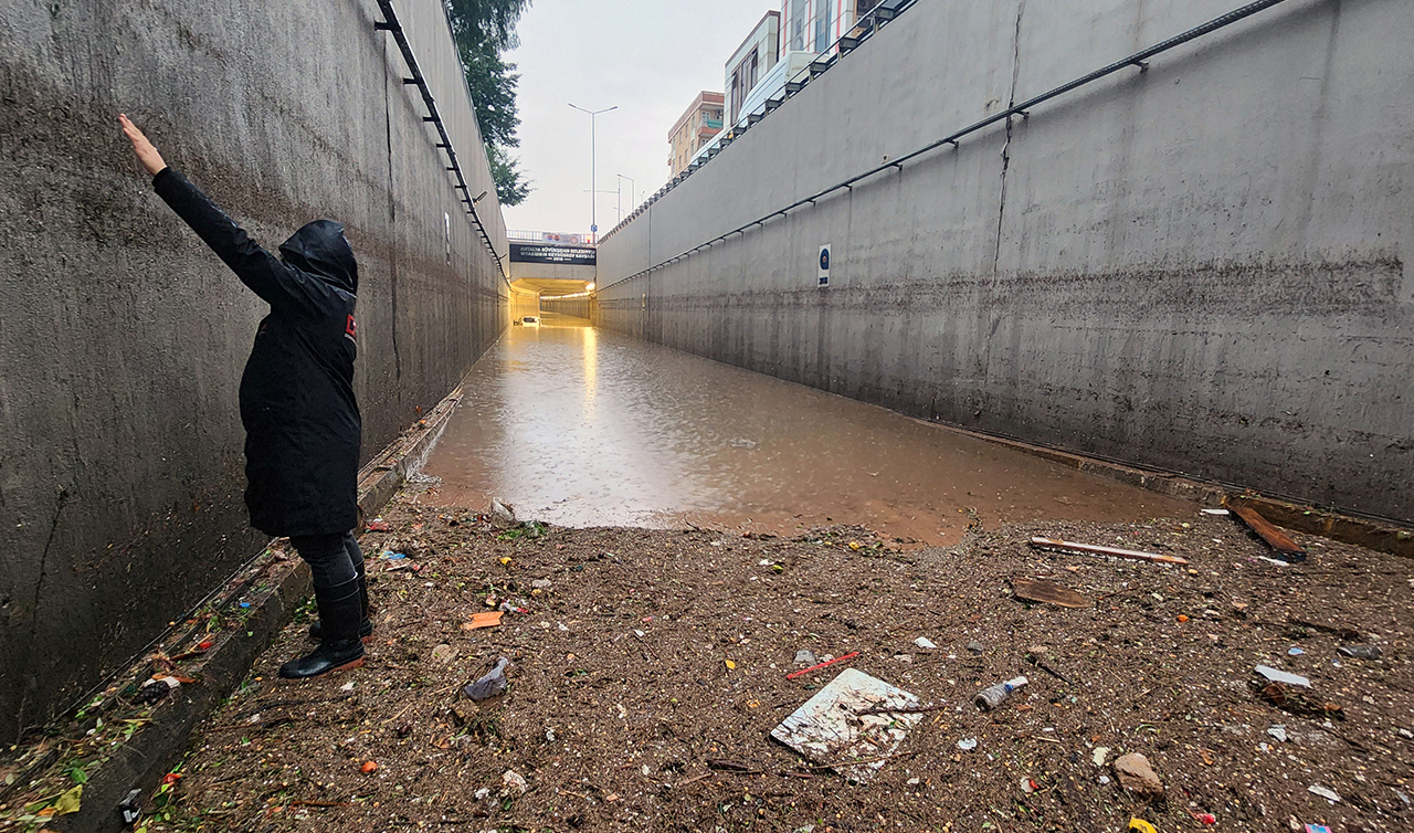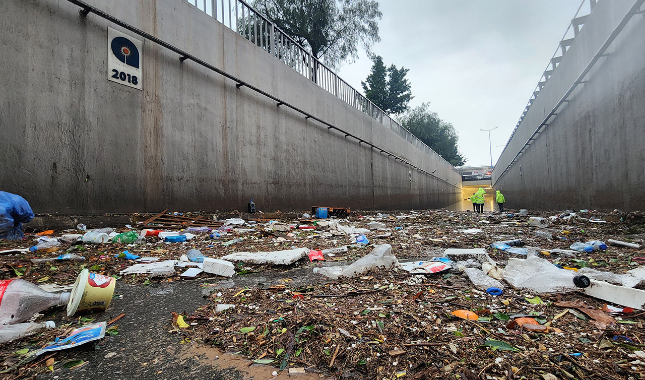 Alt geçitte biriken suyun seviyesinin bir miktar azalmasının ardından geride çöp ve duvardaki izi kaldı. Alt geçidin duvarında 2,5 metre yükseklikte suyun bıraktığı iz, felaketin boyutunu göz önüne serdi.
