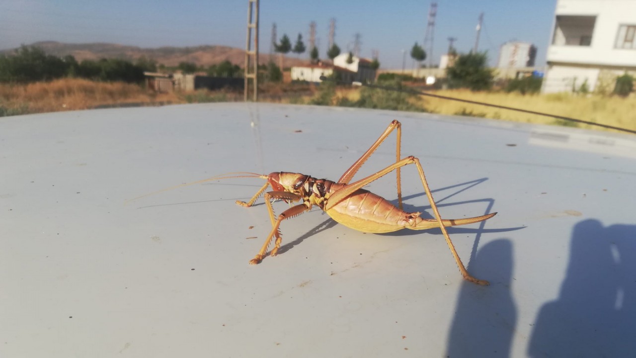 Tarım ve Orman İlçe Müdürü Metin Kaplan, uzunluğu 20-25 santimetreye kadar ulaşan bu çekirge türünün arpa ve buğday hasadından sonra yoğun görüldüğünü belirterek, "Ekinlerin biçilmesiyle yiyecek sıkıntısı çeken çekirgeler yerleşim yerlerine geliyor. Bu, özellikle geceleri avlanan etçil çekirge." ifadelerini kullandı.