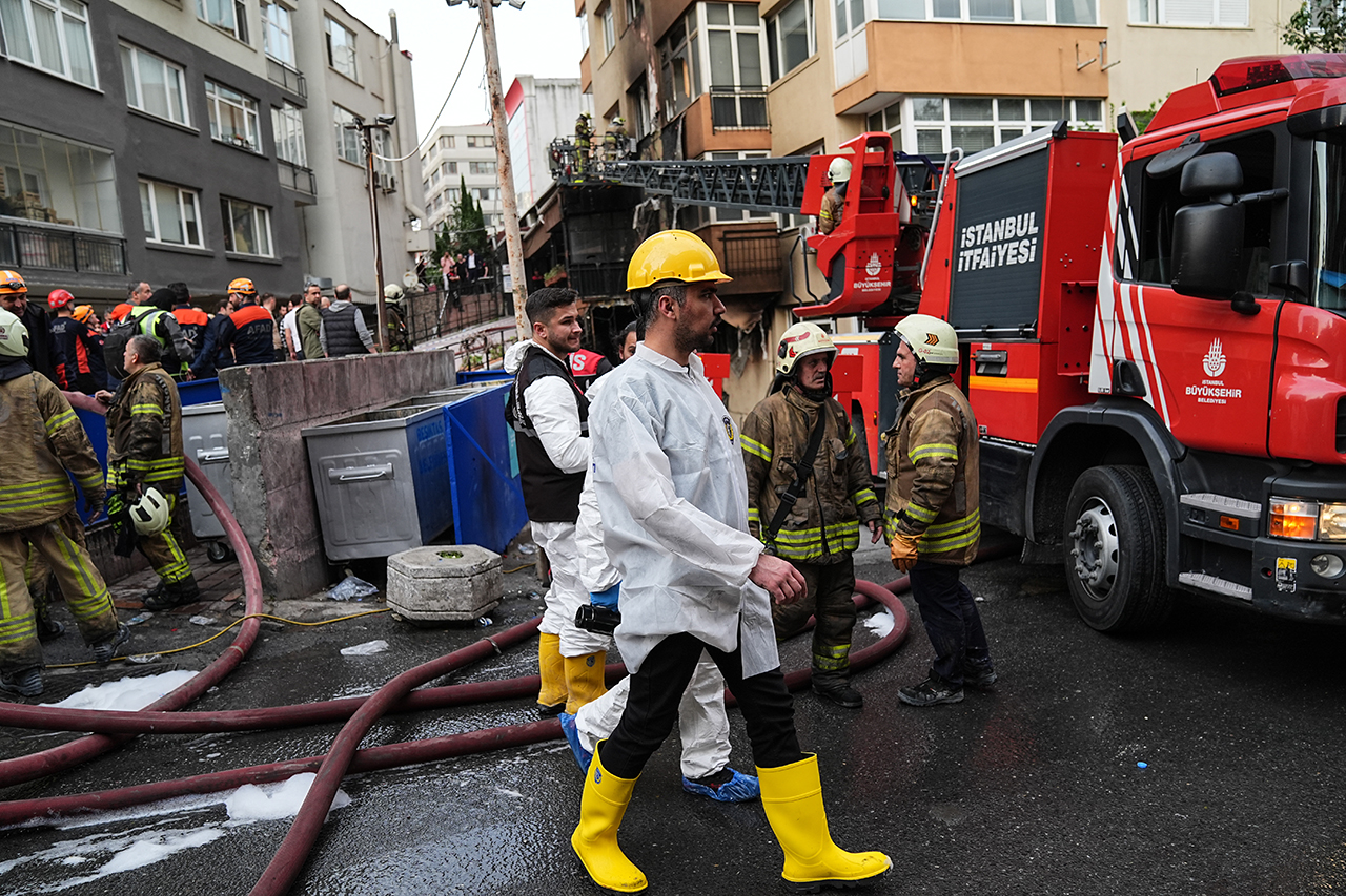 Öte yandan yangına ilişkin görevlendirilen bilirkişi heyeti, olay yerine giderek incelemelerde bulundu. Yaklaşık bir saat süren incelemenin ardından ekipler olay yerinden ayrıldı. Çalışmalara itfaiye ekipleri de katıldı. Polis de binanın etrafından güvenlik önlemleri aldı.