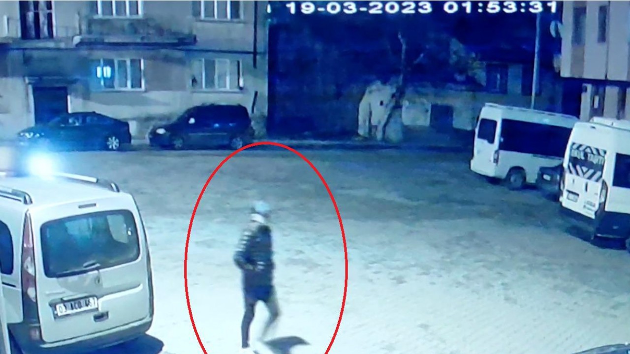 Şüphelinin bazı araçların lastiğini kestiği anlar da kameralarca kaydedildi.