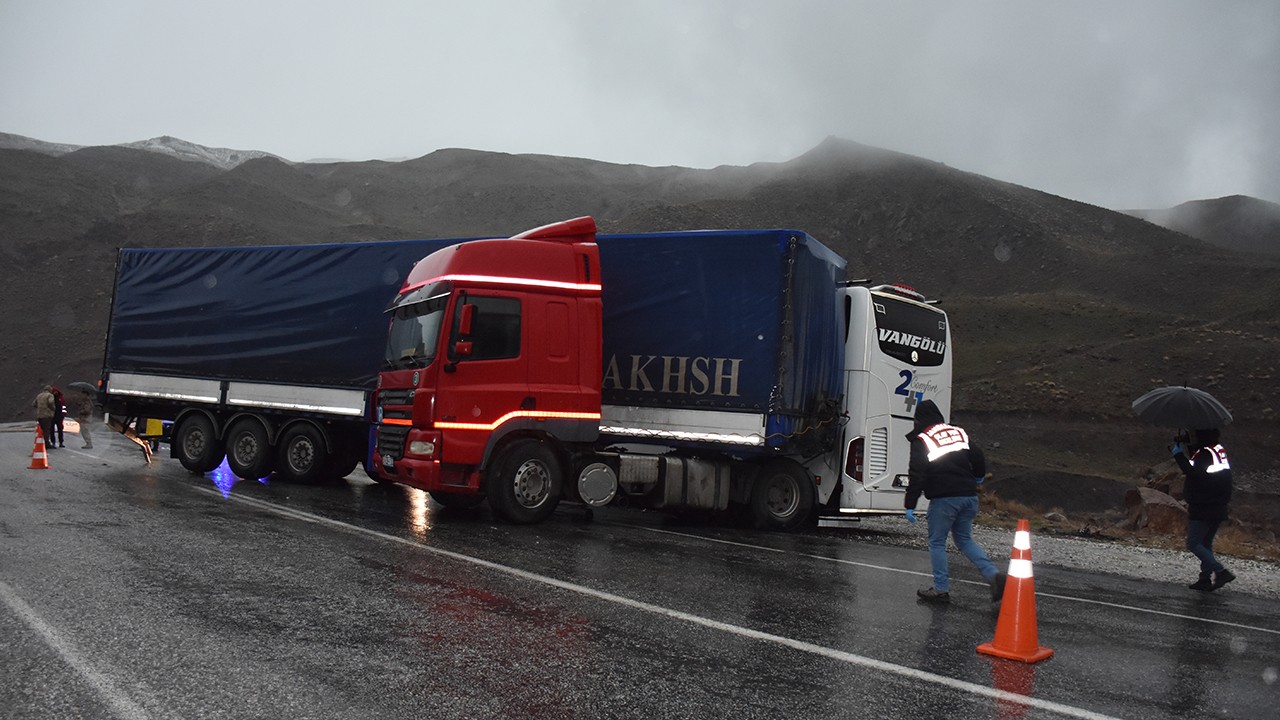 Hakkari-Van kara yolu Dikilitaş köyü yakınında İran plakalı tır, sağanak nedeniyle kayganlaşan yolda önce Van'a doğru seyir halindeki 01 DML 23 plakalı minibüsle çarpıştı, ardından tırın dorsesi de 34 FA 6945 plakalı otobüse çarptı.