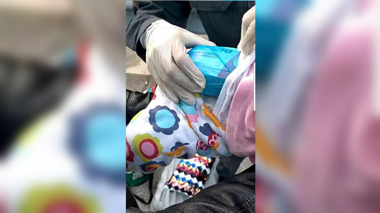 Şüphelilerin üzerinde bir bulguya rastlayamayan ekipler, D.D'nin 3 aylık bebeği T.K'nın karın bölgesinde ilaç kutusu içerisine gizlenmiş 162,55 gram metamfetamin ele geçirdi.