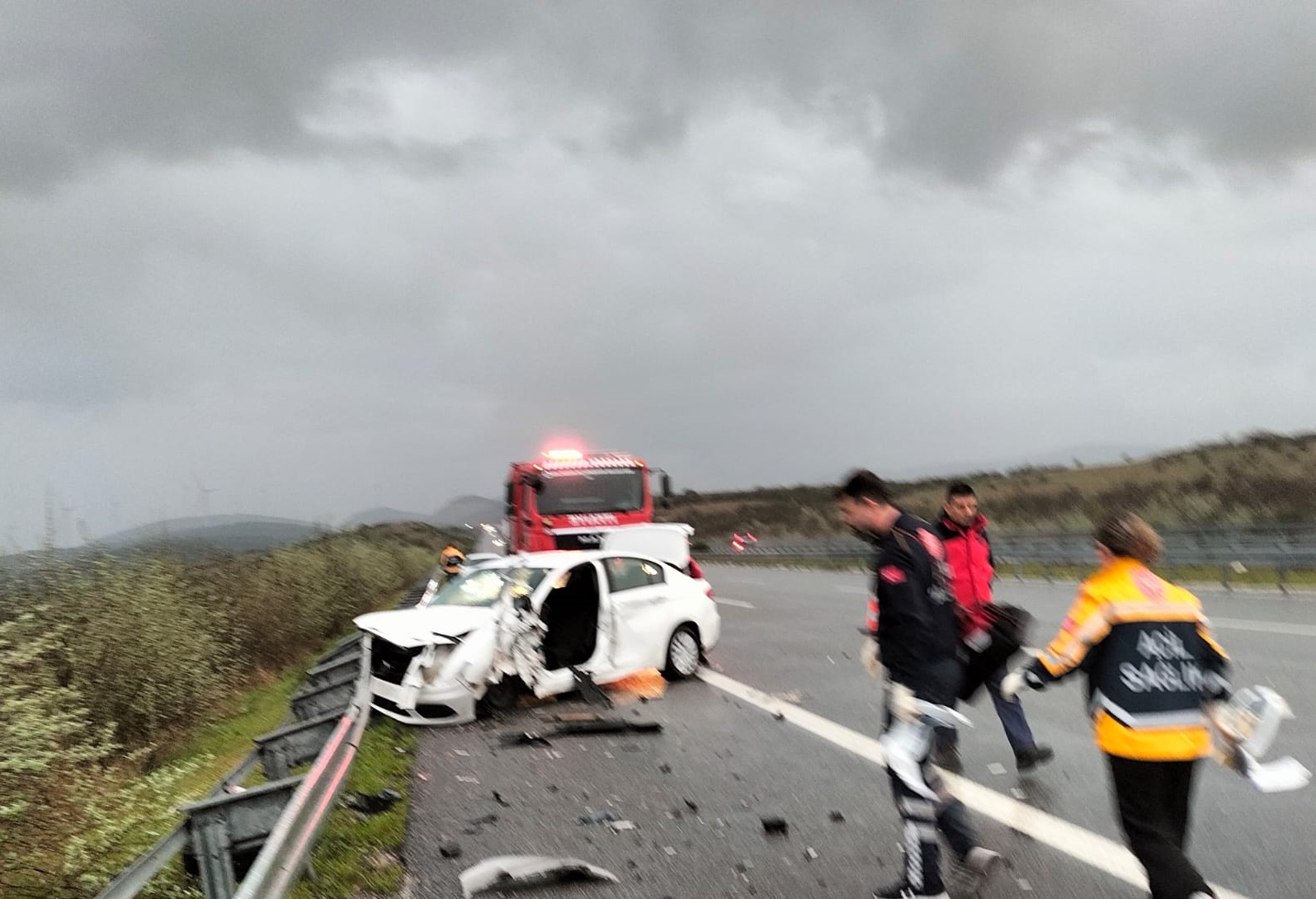 S.A. ile E.C.B. isimli sürücülerin olay yerinde öldüğü belirlendi. Araçlardaki sürücü ve yolculardan yaralanan M.R.D., İ.P.D., K.A. ve E.A. da sağlık görevlileri tarafından, ilk müdahalelerinin ardından ambulanslarla Atatürk Şehir Hastanesi ile Balıkesir Devlet Hastanesi'ne kaldırıldı. Tedaviye alınan yaralıların sağlık durumlarının iyi olduğu öğrenildi. Jandarma ekiplerinin yol güvenliği aldığı kazaya ilişkin soruşturma sürdürülüyor.