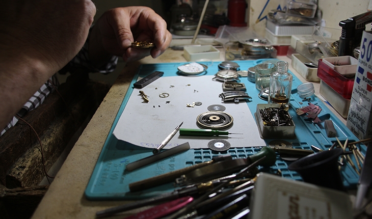 Çevresinde işine olan sevdasıyla ve kentte kalan son antika saat tamircisi olarak bilinen Kalaycı, mesleğine ve hayata dair tecrübelerini anlattı.