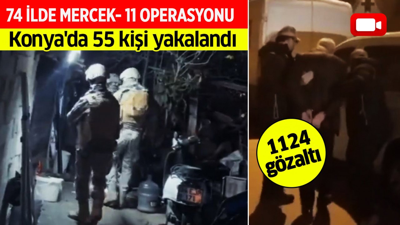 İl Jandarma Komutanlıklarımız ve İl Emniyet Müdürlüklerimiz tarafından son 4 günde İstanbul, İzmir, Adana, Ankara, KONYA, Diyarbakır, Samsun, Bursa, Sakarya, Şanlıurfa, Mersin, Kocaeli, Gaziantep, Kars, Batman, Tekirdağ, Afyonkarahisar, Antalya, Manisa, Balıkesir, Gümüşhane, Kahramanmaraş, Osmaniye, Çorum, Denizli, Elazığ, Erzurum, Kastamonu, Mardin, Uşak, Edirne, Kayseri, Malatya, Ordu, Zonguldak, Düzce, Eskişehir, Giresun, Hakkari, Isparta, Karaman, Kırıkkale, Muğla, Tokat, Van, Amasya, Aydın, Hatay, Kırşehir, Aksaray, Kırklareli, Muş, Rize, Sivas, Bilecik, Bingöl, Kütahya, Nevşehir, Şırnak, Trabzon, Ağrı, Artvin, Bartın, Bitlis, Bolu, Burdur, Çanakkale, Iğdır, Karabük, Kilis, Siirt, Sinop, Yalova ve Yozgat olmak üzere 74 ilde eş zamanlı olarak evlerde, iş yerlerinde ve yol aramalarında yapılan “MERCEK-11”