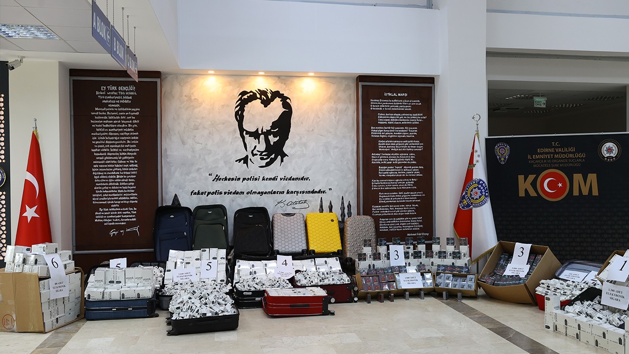 Edirne Emniyet Müdürlüğü ekipleri tren garında gümrük kaçakçılığına yönelik düzenledikleri operasyonda 7 bin 635 elektronik sigara ve çok sayıda elektronik sigara likidi ele geçirdi.