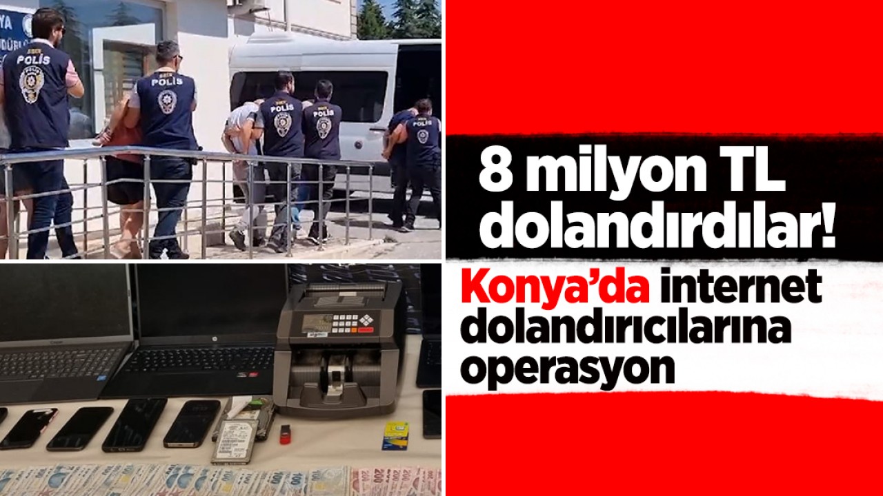 Konya Emniyet Müdürlüğü ekiplerince internet dolandırıcılarına yönelik 6 ilde düzenlenen eş zamanlı operasyonda yakalanan 9 şüpheliden 8’i tutuklanarak cezaevine gönderildi. Siber ekipleri tarafından şüpheli şahısların hesap hareketleri incelendiğinde, mağdurlardan elde edilen 8 milyon 143 bin 200 TL para girişinin olduğu tespit edildi.