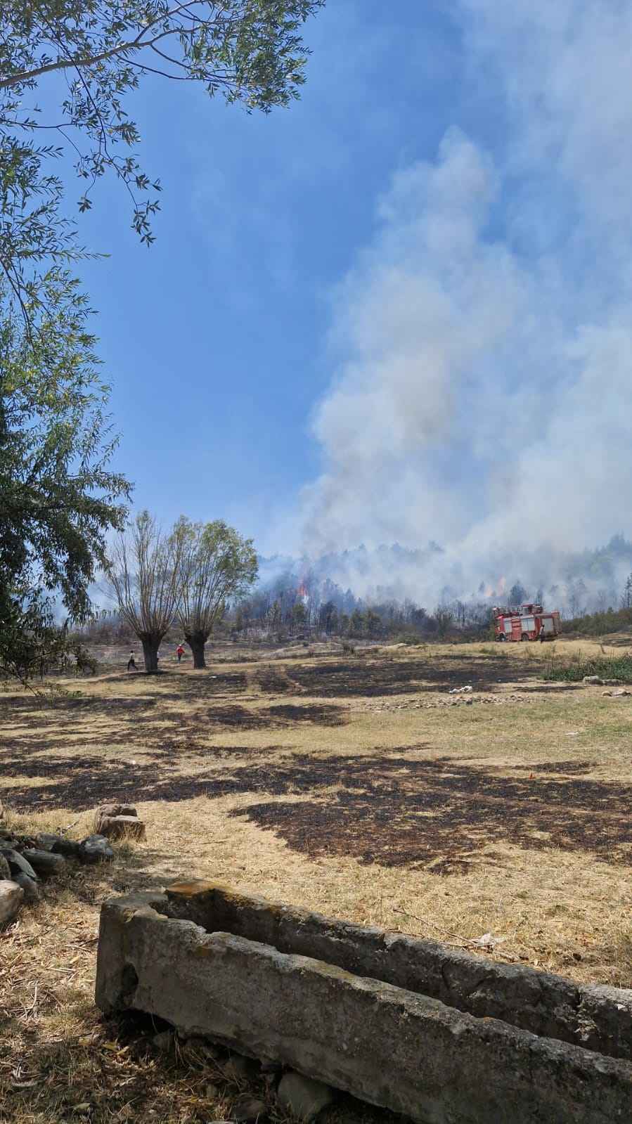 Afyonkarahisar'ın Sandıklı ilçesinde orman yangını çıktı. Ekipler, alevlere havadan ve karadan müdahale ediyor.