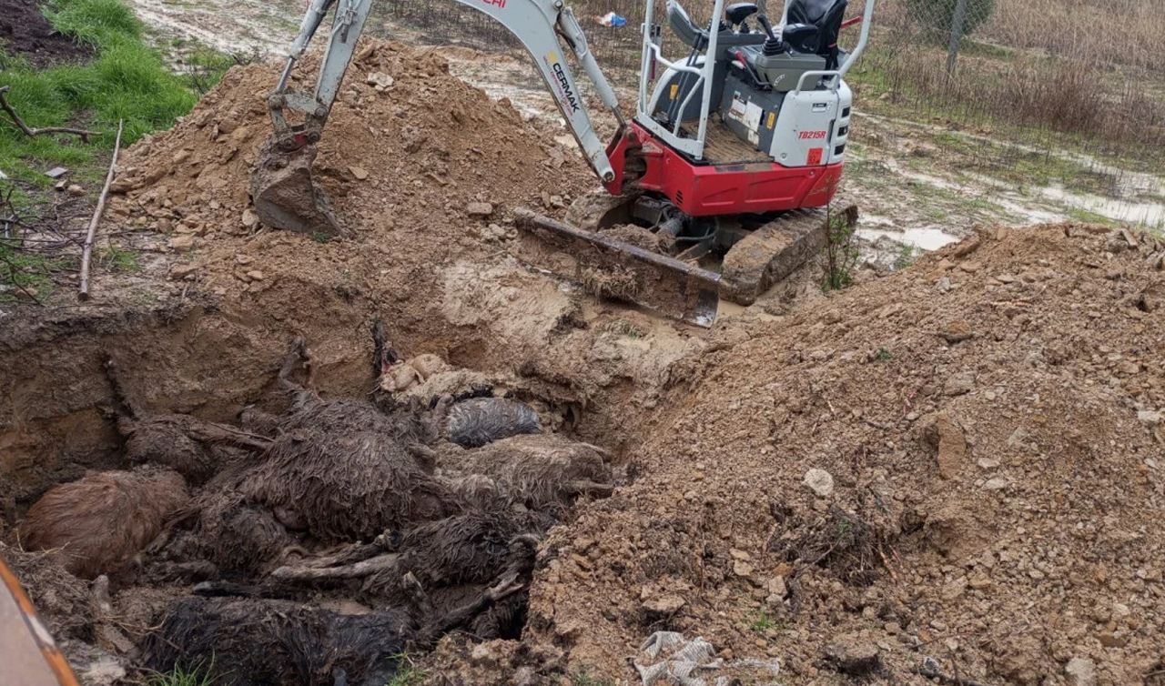Özden, yaşadıkları karşısında çaresizlikle telefon olan hayvanlarını iş makinesiyle kazdığı çukura gömdü. Zararının 500 bin liranın üzerinde olduğu öğrenildi.