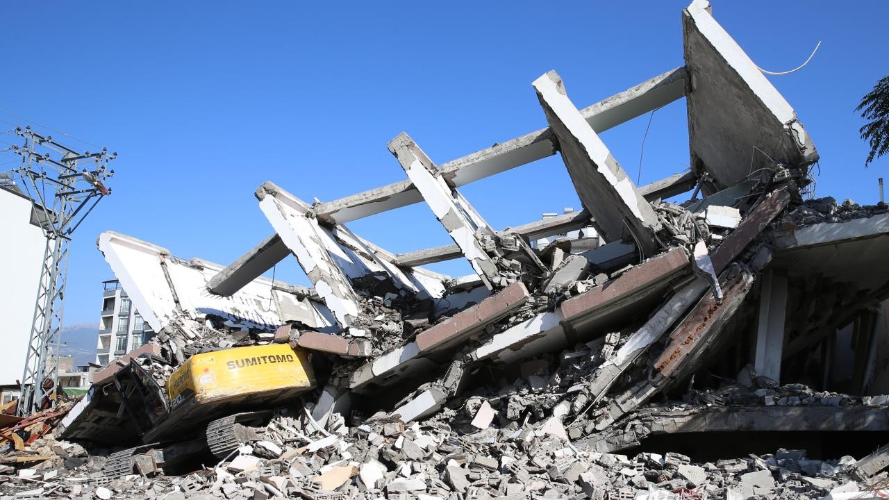 Hatay'ın Arsuz ilçesinde, ağır hasarlı bir binanın, yıkımı sırasında iş makinesinin üzerine çökmesi sonucu operatör yaralandı.