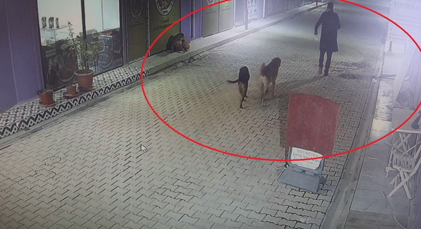 Esnaf, güvenlik kameralarını izlediğindeyse akılalmaz olayla karşılaştı. Kameralarda; vatandaşlar tarafından bilinen madde bağımlısı şahsın iş yerinin kapısını açarak, sokak köpeklerini anne kedi ve yavrularının üzerine bıraktığı görüldü.
