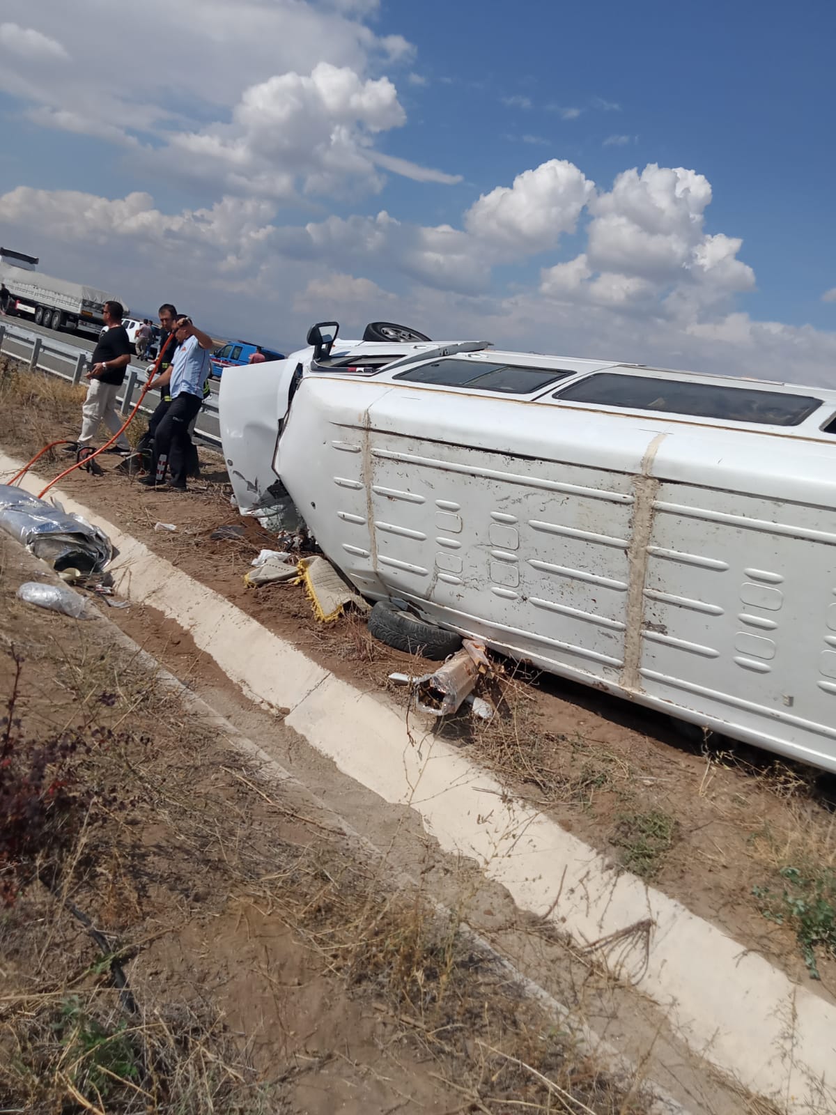 Aksaray'da arka lastiğinin patlaması sonucu kontrolden çıkarak bariyere çarpıp devrilen minibüsün sürücüsü Volkan Arslan (25), yaşamını yitirdi.