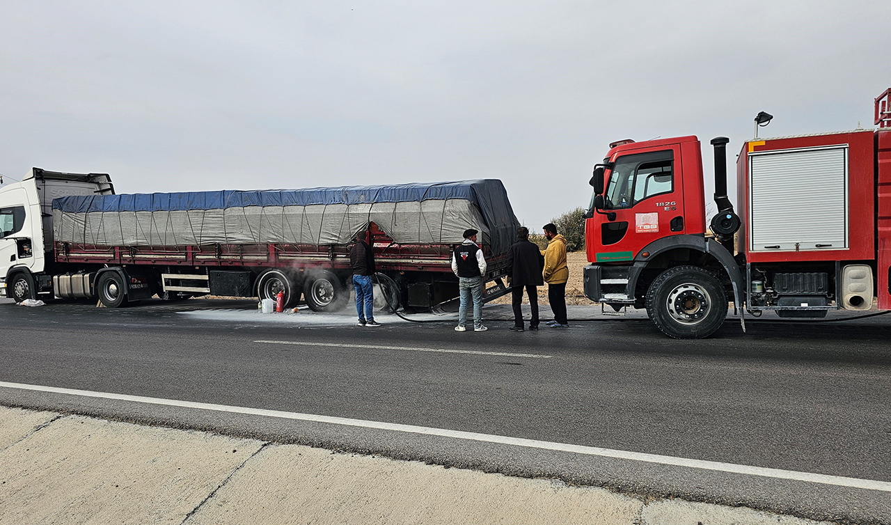 Dumanları fark eden tır sürücüsü hemen sağa çekerek tırda bulunan yangın tüpüyle alevlere müdahale etti. Bu sırada yoldan geçen diğer sürücüler durumu hemen 112 Acil Çağrı Merkezine bildirdi. İhbar üzerine olay yerine itfaiye ekipleri sevk edildi.