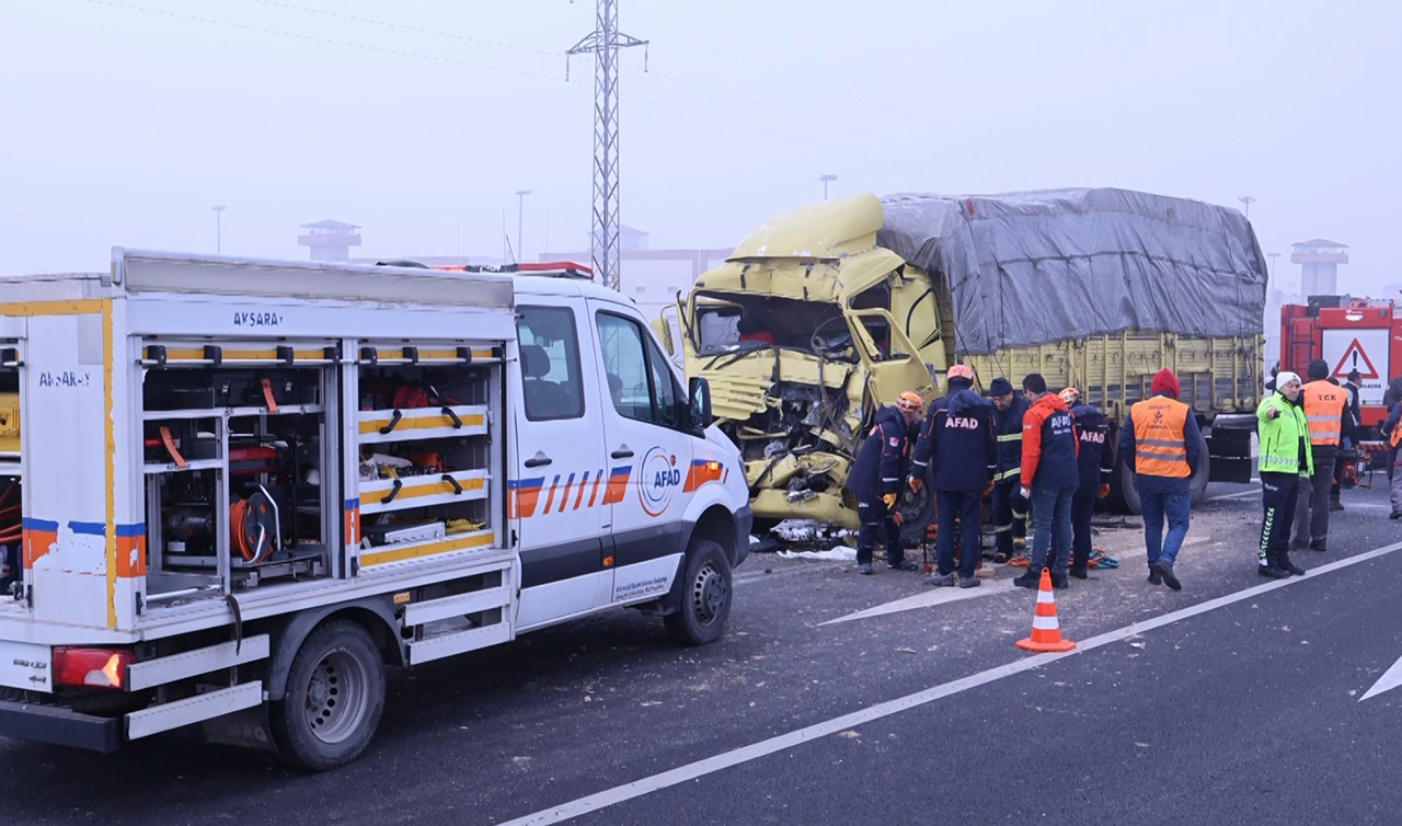 Kaza, sabah saatlerine Aksaray - Konya Karayolu Cezaevi Kavşağı Aksaray istikametine yaşandı. Edinilen bilgiye göre, Konya’dan Aksaray istikametine 20 H 6109 plakalı kamyon ile seyreden Hüseyin G. (43), cezaevi kavşağında kırmızı ışıkta bekleyen Mehmet T. (60) idaresindeki 68 HZ 909 plakalı kamyonu yoğun sis nedeniyle fark etmeden arkadan çarptı.