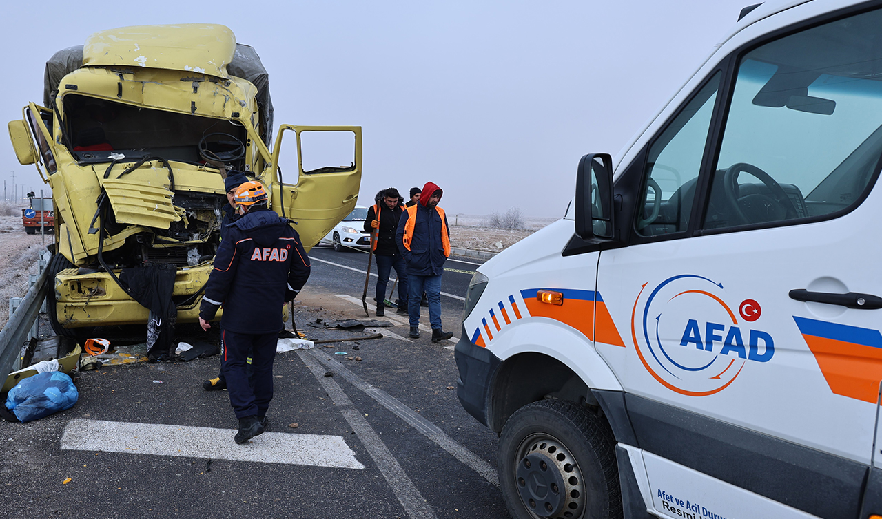 Aksaray-Konya karayolunda kırmızı ışıkta bekleyen kamyona arkadan çarpan kamyonun sürücüsü kabinde sıkıştı. Kabin içinde yaşanan can pazarında yaralı sürücünün “Ayağım” feryadı yürekleri dağladı. Ayaklarından sıkışan sürücü yarım saat süren çalışmayla kurtarılırken ağır yaralı olarak hastaneye kaldırıldı.