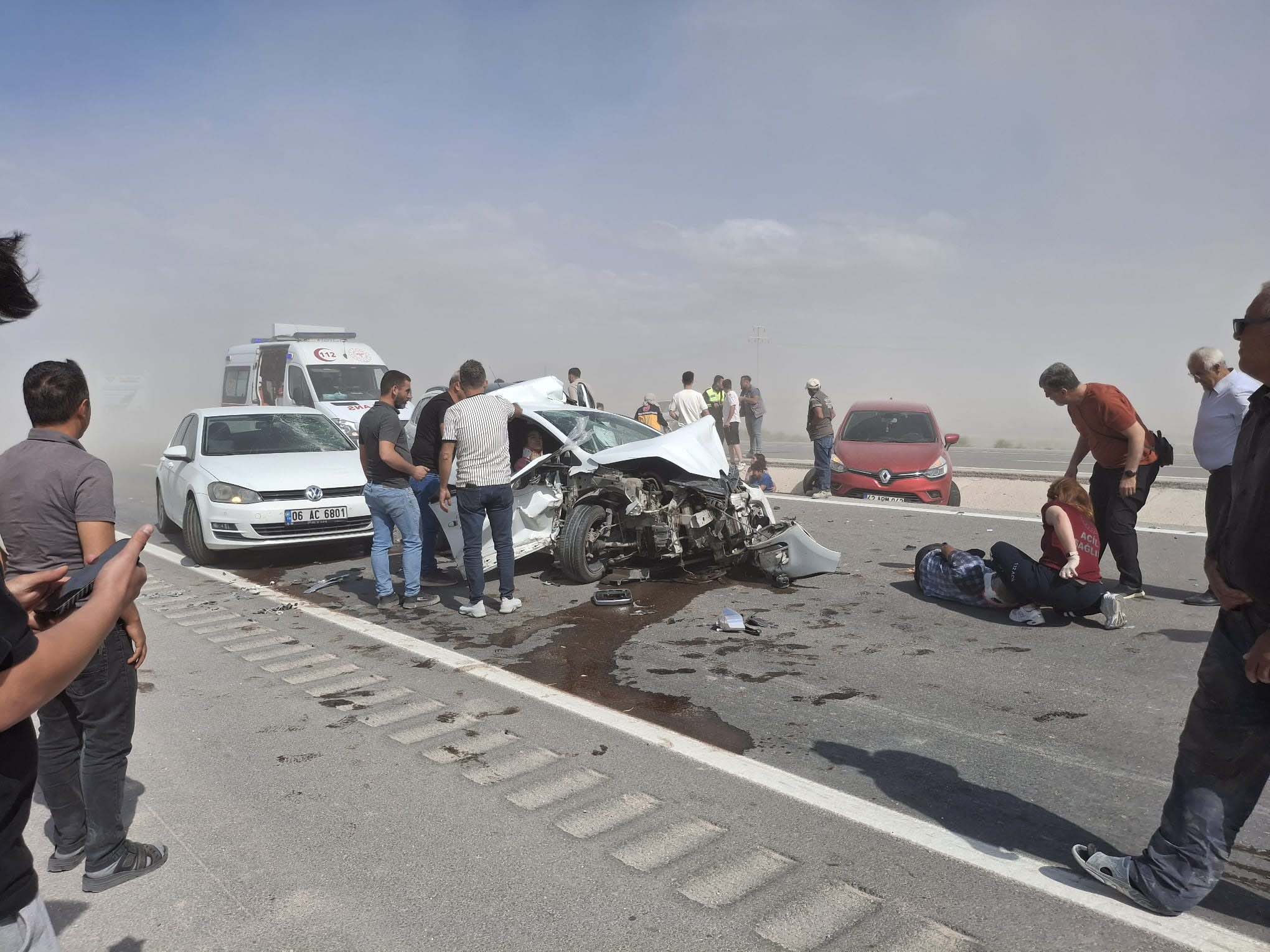 Aksaray'da kum fırtınası nedeniyle 8 aracın karıştığı zincirleme kazada, 11 kişi yaralandı.