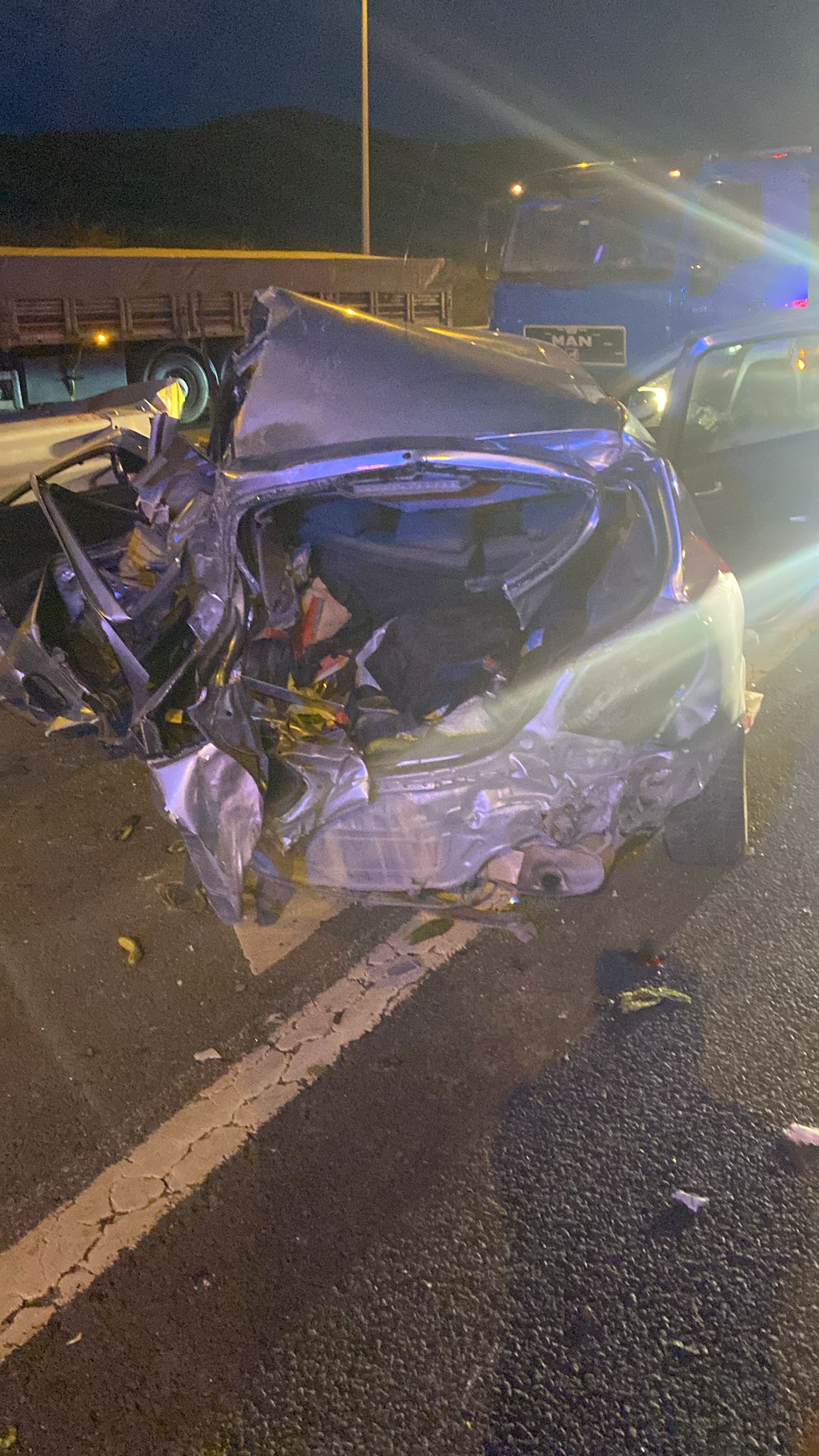 Ben kazayı gördüm karşı köprünün üzerinden kayseri otobanına doğru gidiyordum sollayan otomobil otoban girişini kaçırdığını fark edince en soldan en sağa geçerken frenliyor aracını gelen tırda ezip devriliyor.