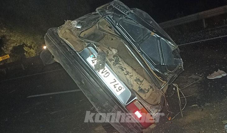 Muhammet B. (31) idaresindeki 42 VD 749 plakalı otomobil, Karahüyük Mahallesi yakınlarında, yoldaki lastik parçasına çarpmamak için sürücüsünün direksiyon hakimiyetini kaybetmesi sonucu refüje çarptı.