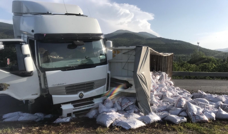 Ali Burhan idaresindeki 03 PN 912 plakalı kamyonet, Atakent kavşağı yakınında Ahmet Bayraktar'ın (47) kullandığı 43 U 1533 kömür taşıyan tırla çarpıştı. Kamyonetteki kiraz ve çileklerin yola saçıldığı, tırın dorsesinin devrildiği kazada yaralanan Ali Burhan, ambulansla Akşehir Devlet Hastanesi'ne kaldırıldı.