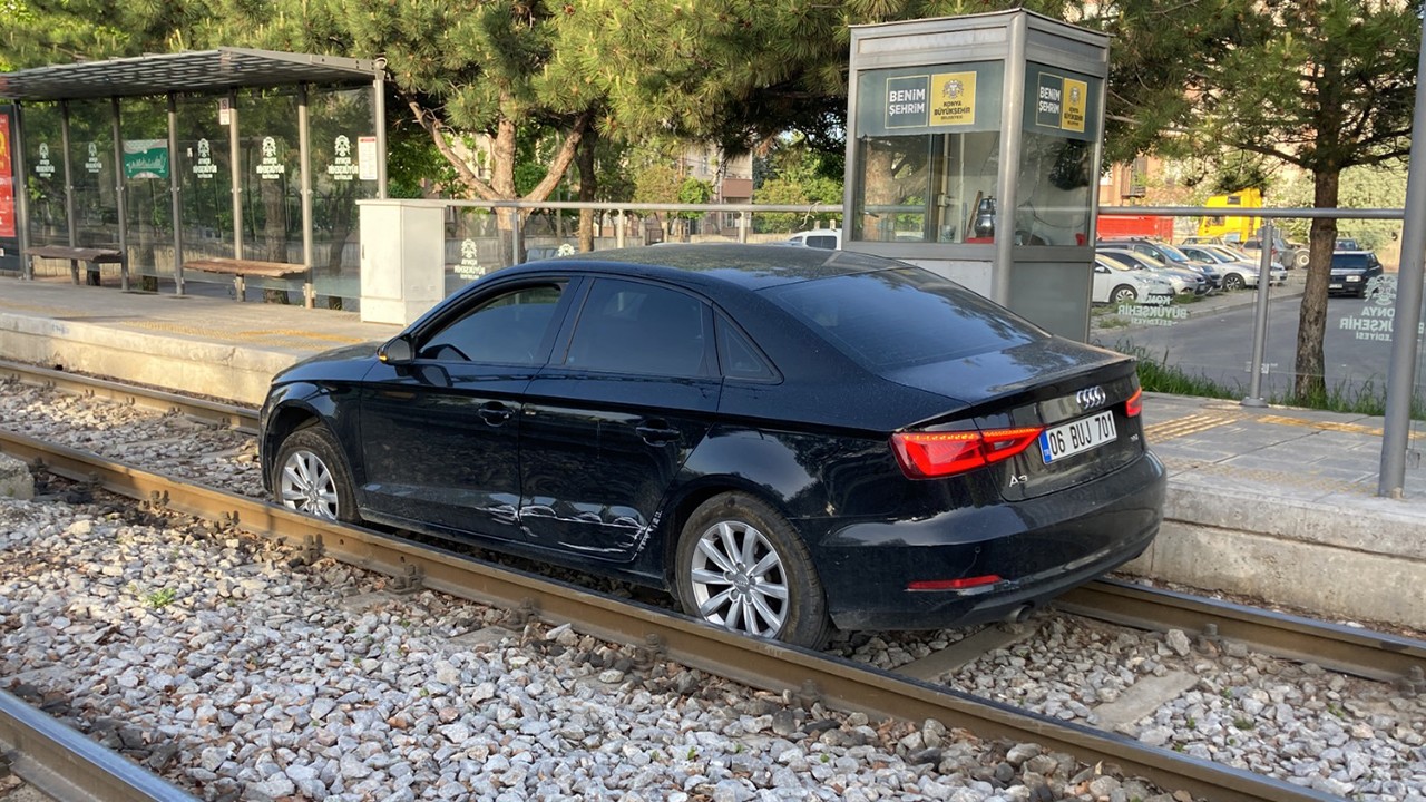 Konya’nın Selçuklu ilçesinde yaşanan olayda sürücü yüksek dozda alkollü çıktı.Yol sandığı tramvay hattında ilerlemeye çalıştı.