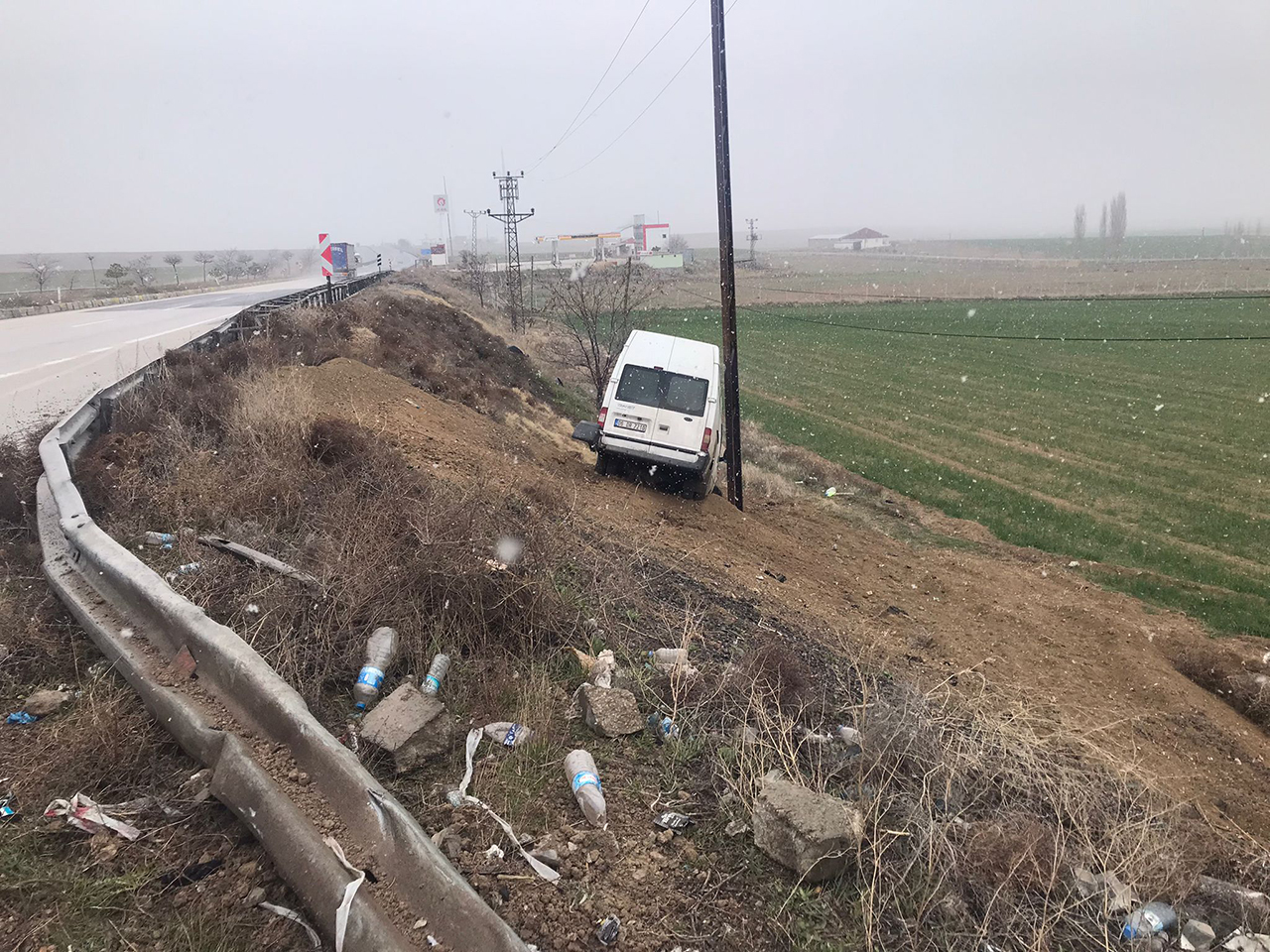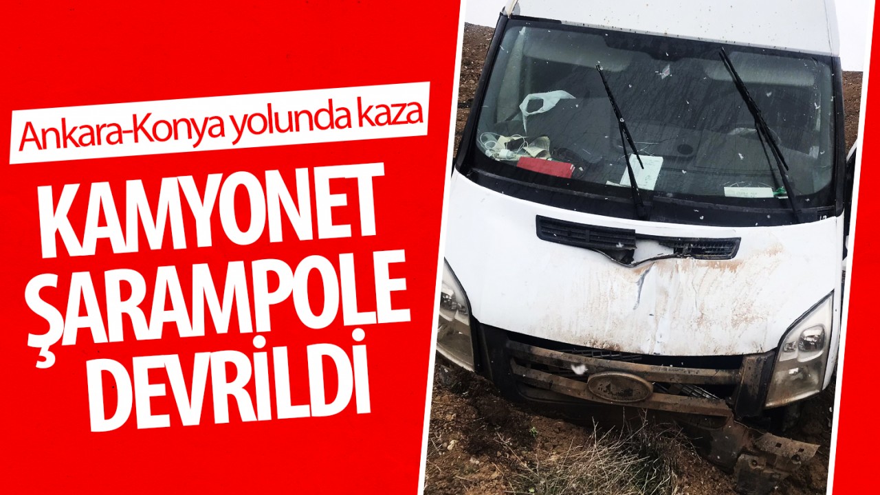 Ankara-Konya kara yolunda kamyonet şarampole devrildi. Meydana gelen kazada sürücü yaralandı.