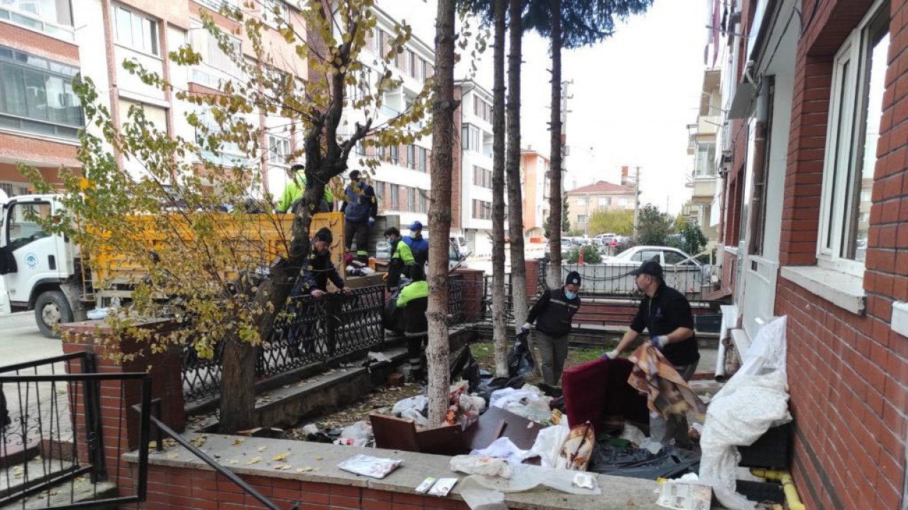 Belediye ekipleri, İl Hıfzıssıhha Kurulu'nun kararı ile polis ekipleri eşliğinde adrese gitti. Anne ile oğlunun evde çöp biriktirdiği belirlendi. Odunpazarı Belediyesi Temizlik İşleri Müdürlüğü ekipleri, ev temizlik çalışması yaptı.