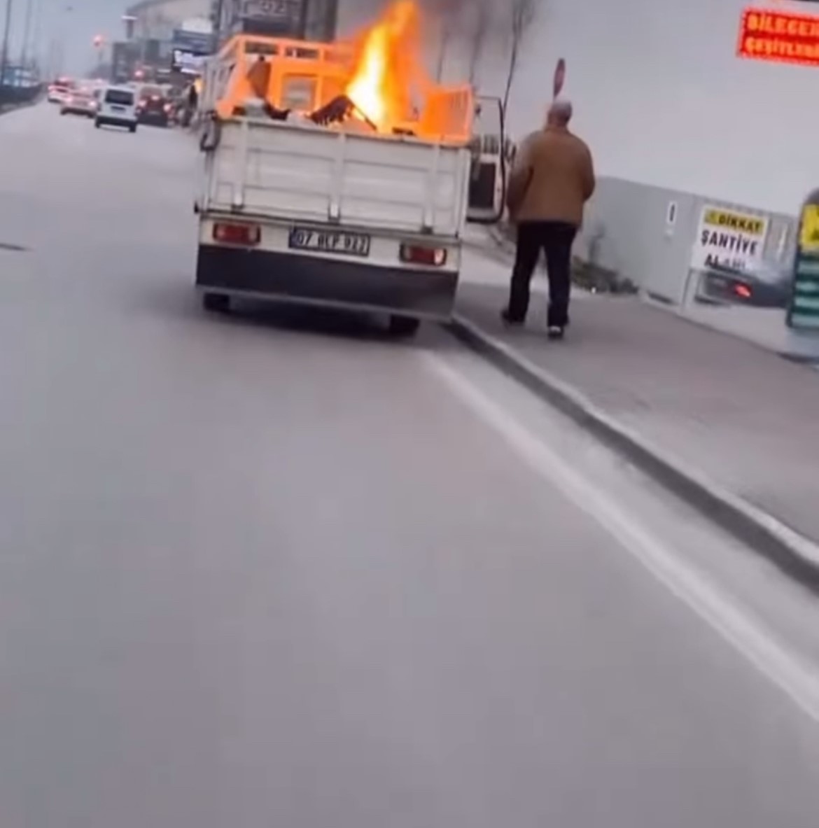 Kısa sürede büyüyen alevler kamyonetin kasasına yayılırken, durumu fark eden sürücü aracını hemen sağa çekti. Yangın tüpüyle müdahale edilen yangın faciaya yol açmadan söndürüldü. Olayla ilgili tahkikat başlatıldı.